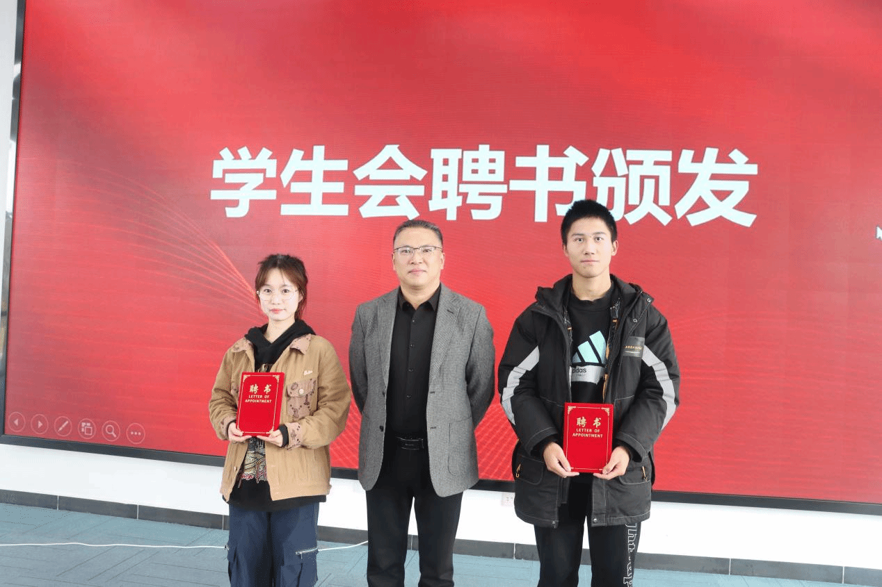 聘书办法仪式上,孙宏宣读了《理学院第一届学生会干部、干事聘任决定》,雍海龙为理学院第一届学生会主席团成员颁发了聘书,孙宏为各部门部长颁发了聘书,各部长为部门成员颁发了聘书。这份聘书,不仅是一份荣誉,更是一份认可、一份责任。学院希望通过这份聘书,激发大家为学生会发展贡献自己的力量。