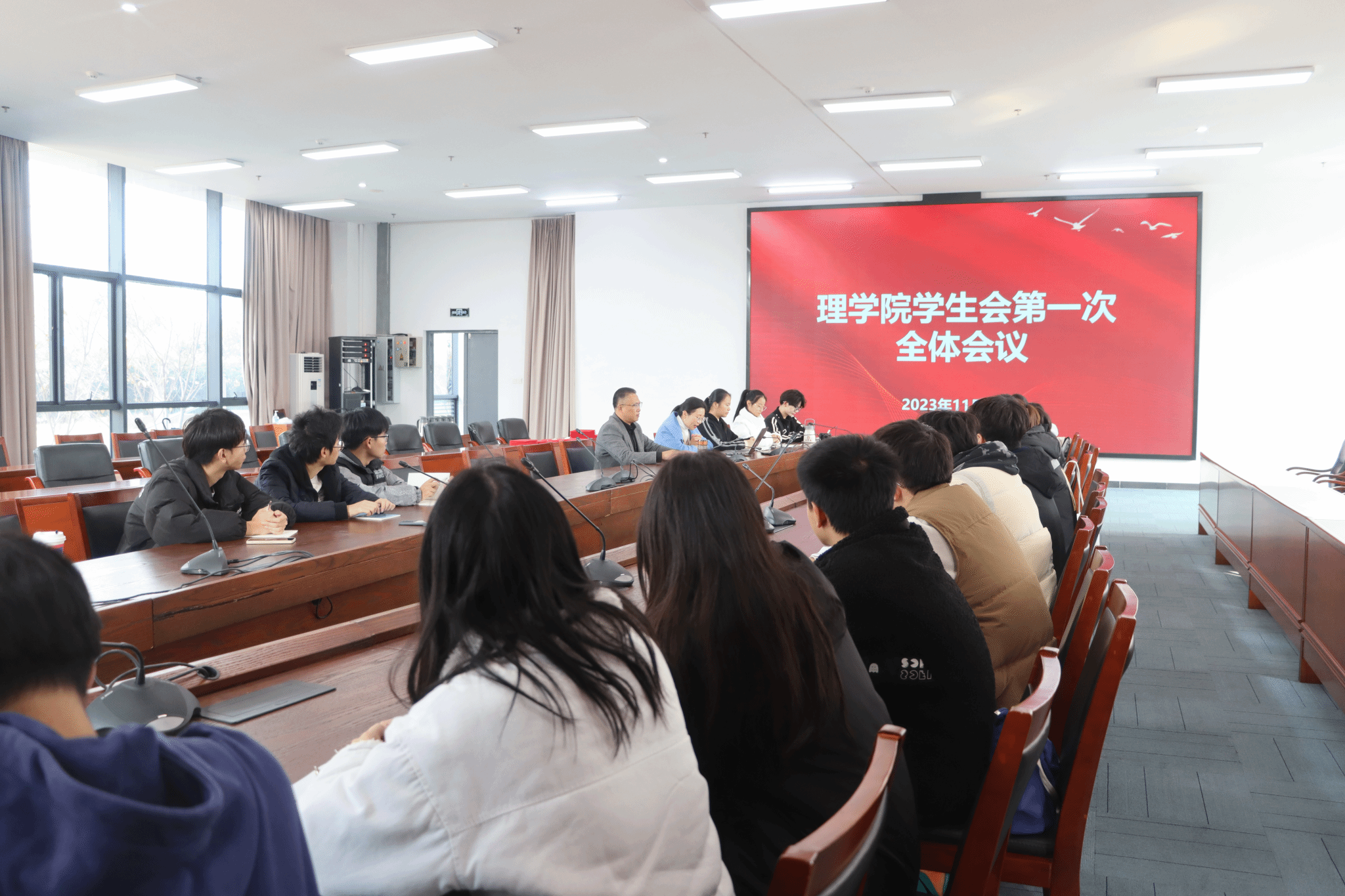 为进一步提升学生干部的思想政治素养、团队精神、奉献精神和履职能力,真正实现学生“自我教育、自我管理、自我服务”,11月29日下午,理学院第一届学生会全体大会及学生干部培训会在科技楼3号楼110会议室举行。理学院党总支部书记雍海龙、辅导员孙宏及第一届学生会全体成员参加了会议。会议由孙宏主持。