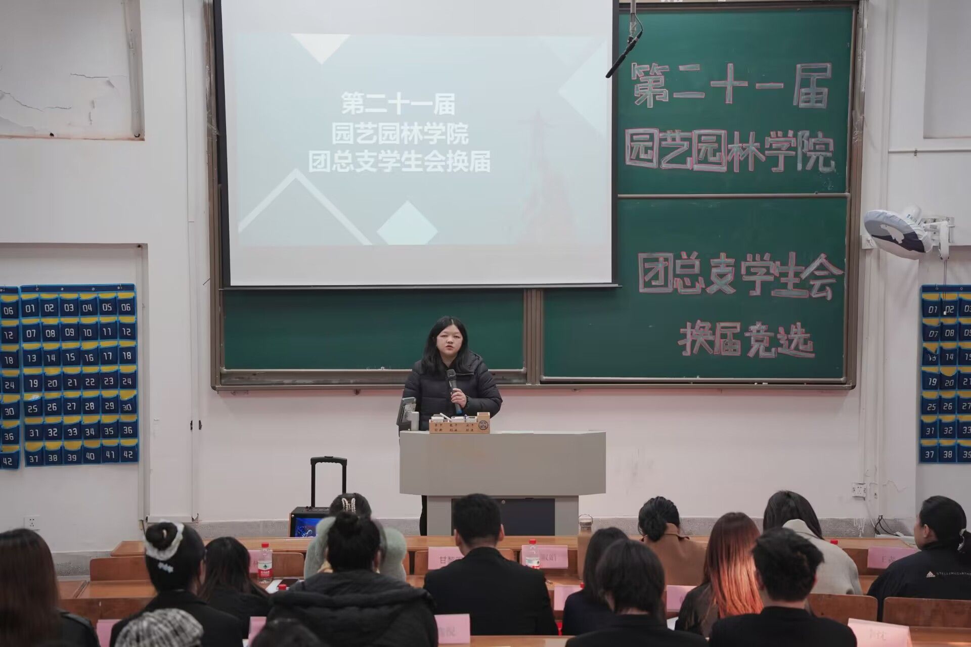 为进一步加强团总支学生会干部队伍建设,发挥广大学生团员干部的纽带和桥梁作用,园艺园林学院于农科楼南114举办第二十一届团总支学生会换届竞选大会。党委副书记甘黎明、学工办主任徐敏、副主任徐淑娟、辅导员王淼老师、张胜男老师以及学院学生代表出席本次竞选大会。