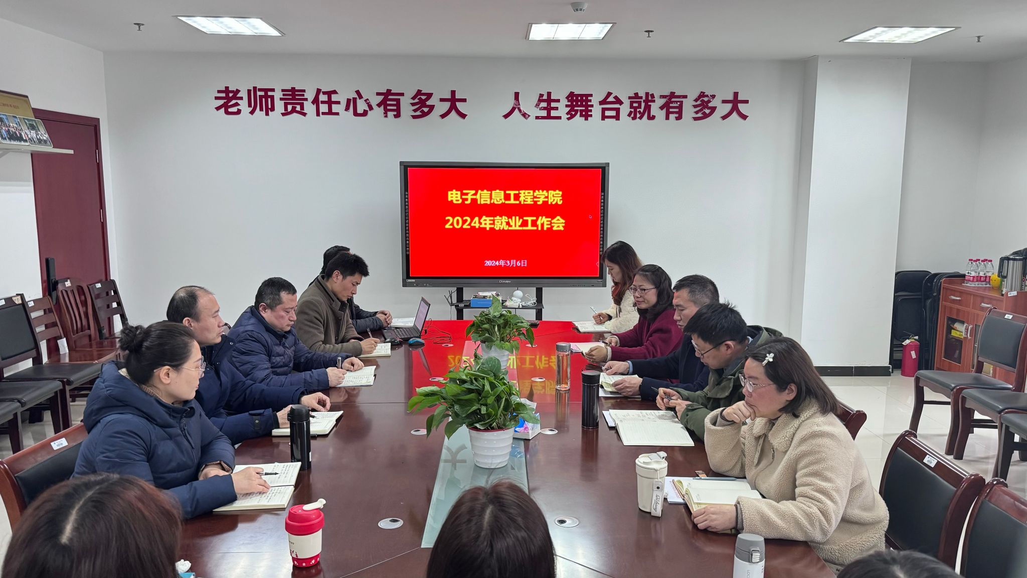 为了稳步推进2024年就业工作,电信学院于3月6日在科技楼4号楼410会议室召开了就业工作会。会议由电信学院党委书记徐志国主持,院长胡国兵、党委副书记陈智慧、副院长杨娟,各系部科室主要负责人和毕业班辅导员参加。