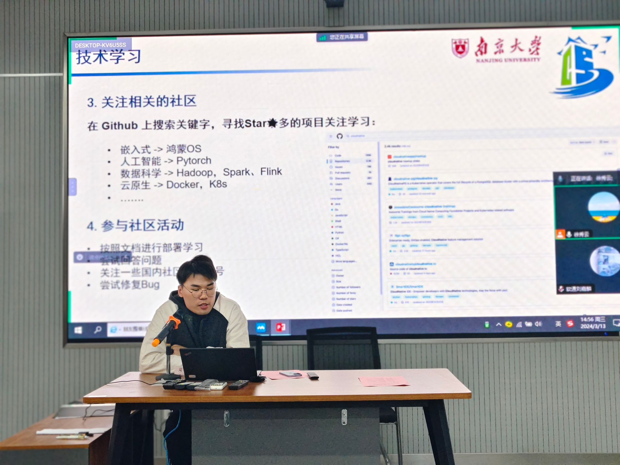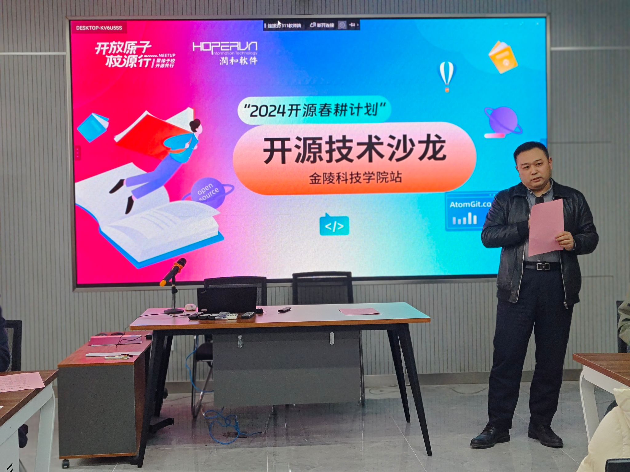 开放原子开源基金会校园行——“2024开源春耕计划”旨在激发高校开源社团的创新精神,推动开源技术在校园内的普及与实践。我校开放原子开源社团积极响应,并于3月13日,在软件工程学院2-311举行了“2024开源春耕计划——开源技术沙龙”。本次活动软件工程学院邀请了讯方科技的高级工程师李欣、软通动力江苏区域总监王健以及南京大学计算机学院的王问骁学长到校给同学们分享开源技术及竞赛经验,软件工程学院副院长徐永华、软件工程系主任洪蕾及相关指导教师参加了本次活动。