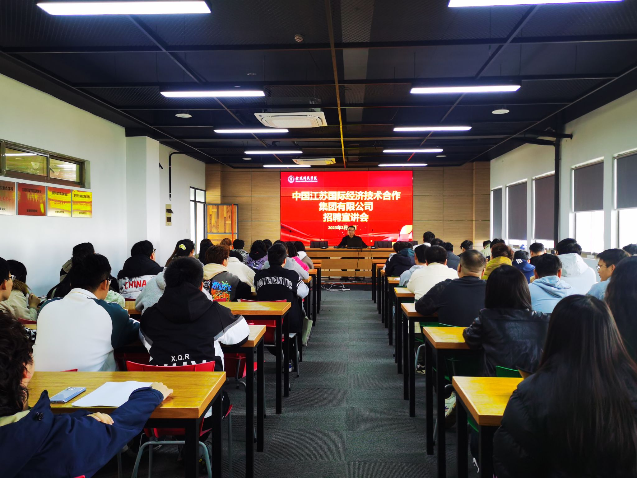 为进一步推进2024届毕业生就业工作,为毕业生提供更多优质就业机会,3月15日,建筑工程学院邀请中国江苏国际经济技术合作集团有限公司(简称“中江国际”)来校招聘,招聘会由的中江国际招聘经理王劲捷先生主讲。为学院的毕业生们举办了一场精彩而深入的招聘宣讲会。