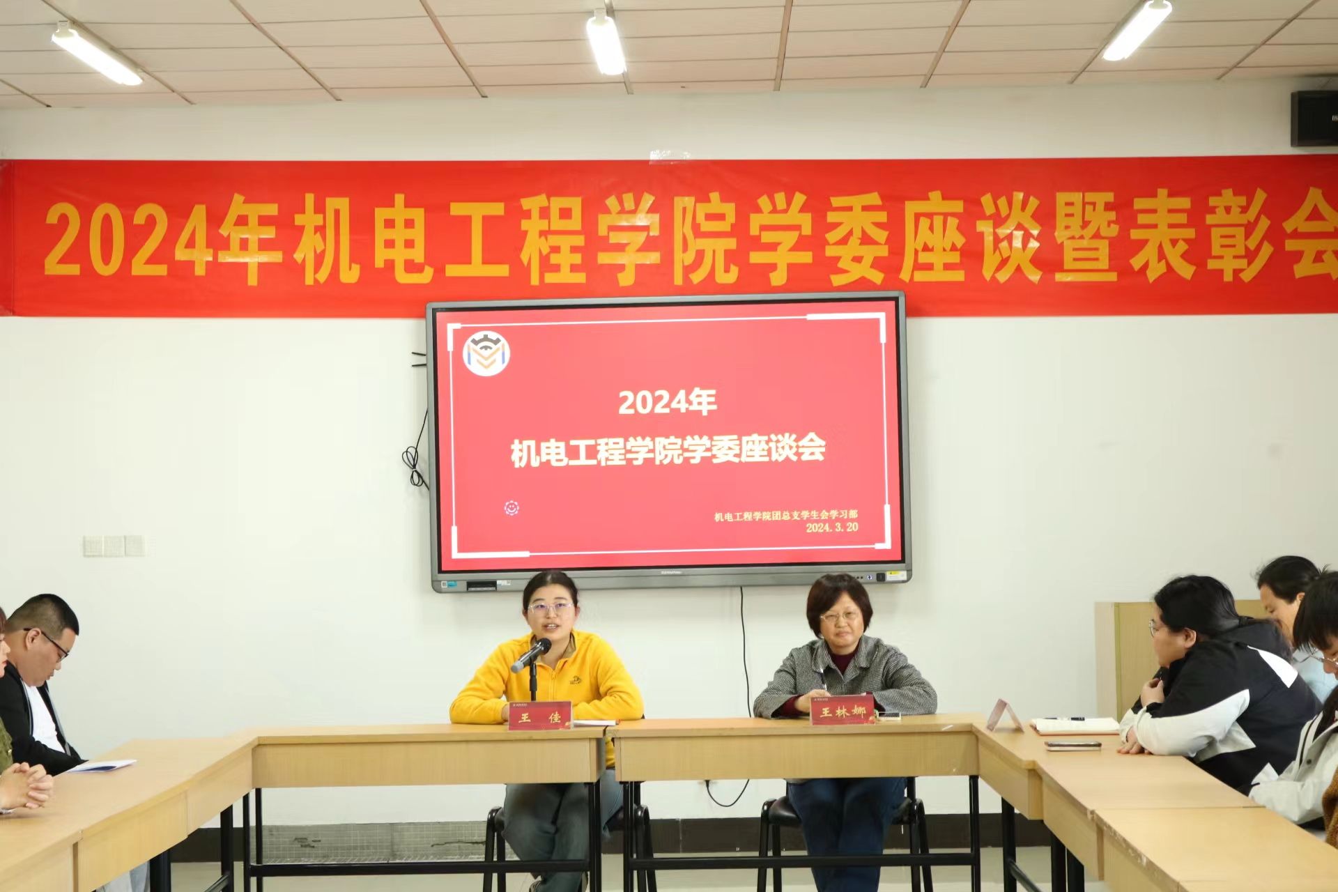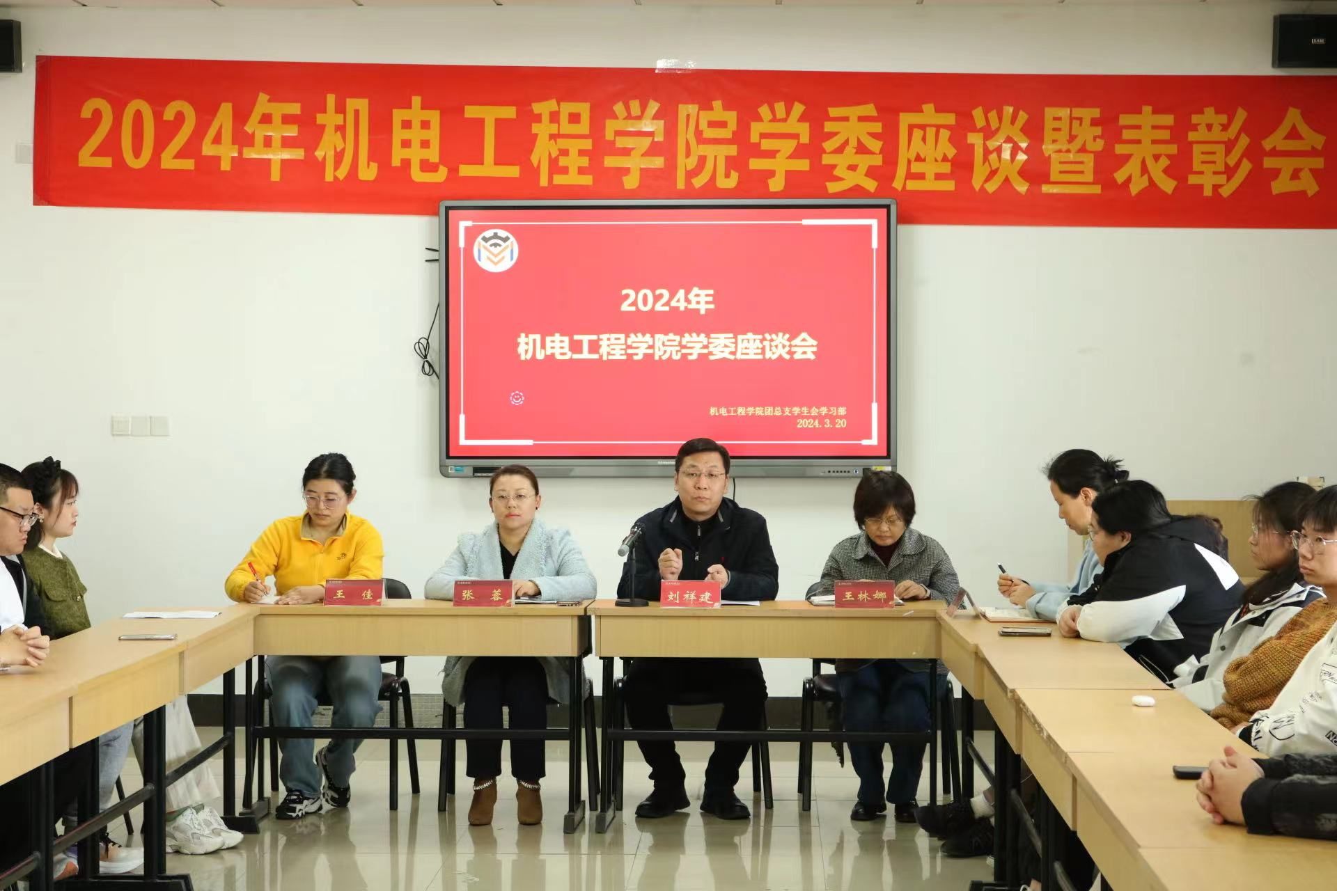 近日,机电工程学院举办学习委员座谈会暨表彰会,旨在调动学院学习委员积极性,健全学院学风建设机制,为即将到来的本科生教学评估做准备。学院党委副书记张蓉、副院长刘祥建,学院教务管理科科长王林娜、副科长杜娟,辅导员王佳以及各班学习委员参加了本次会议。