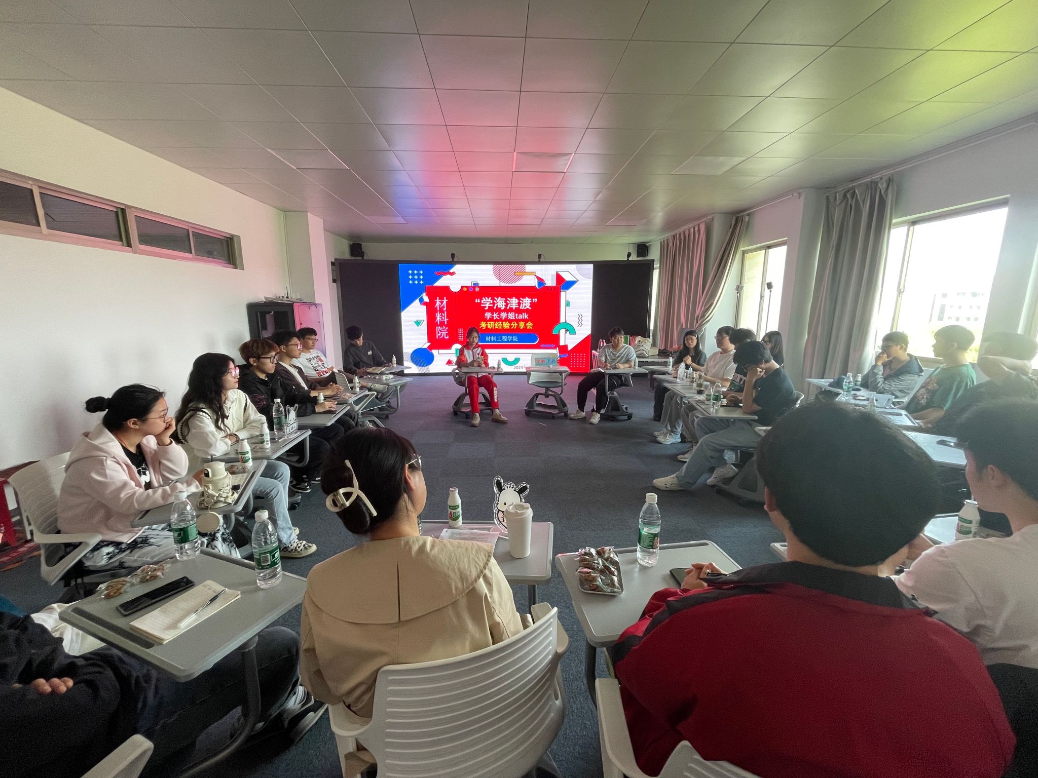 为了让同学们更好地了解考研相关信息,激发考研斗志,4月24日下午,材料工程学院在知行楼A409举行了考研经验分享会,就业干事华岚芳主持,大三学生广泛参与。