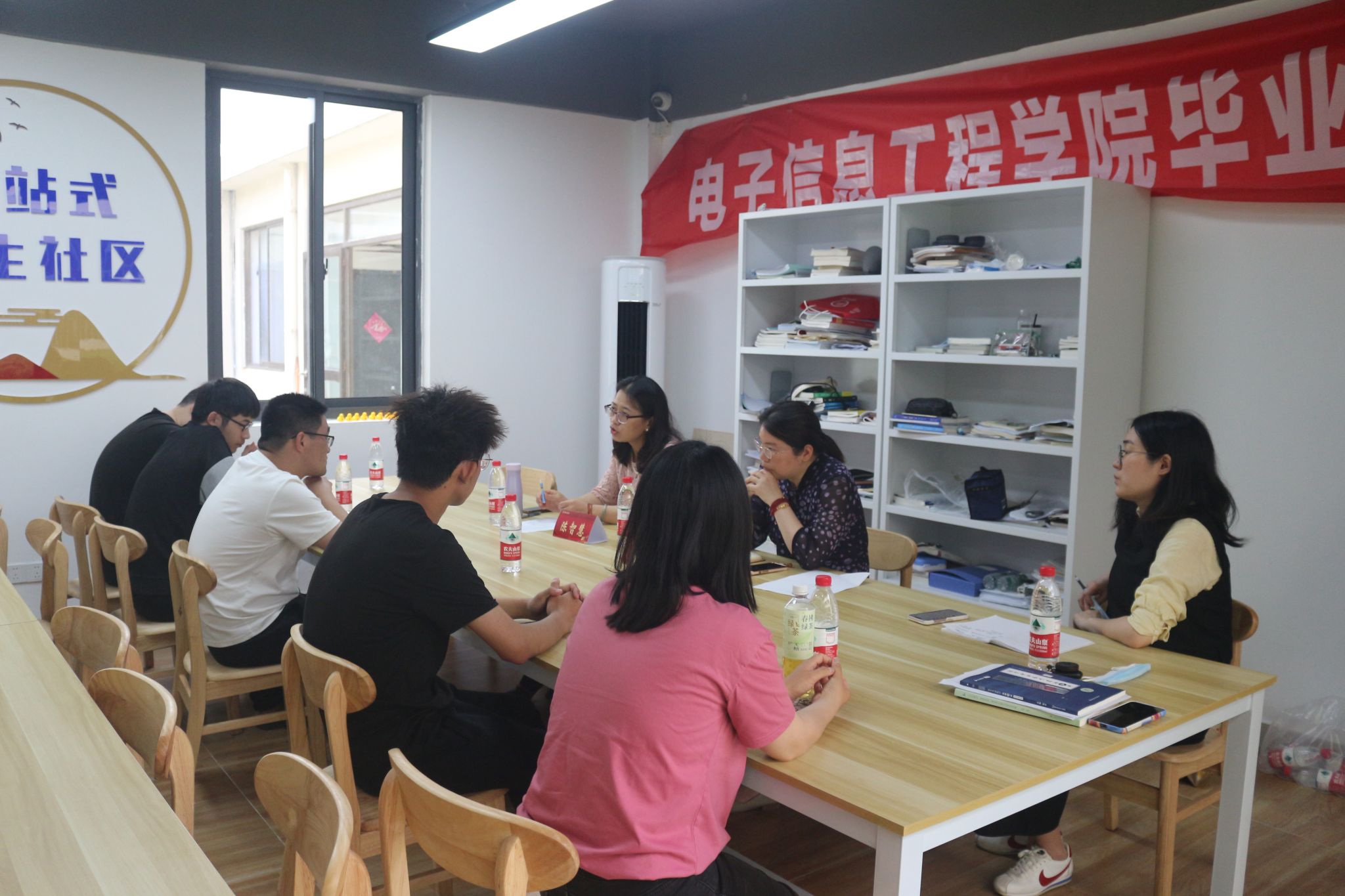 电信学院于5月22日在“一站式”学生社区召开了毕业生座谈会,学院党委副书记陈智慧、副院长杨娟、辅导员郭晓及毕业生代表参加了本次座谈会。