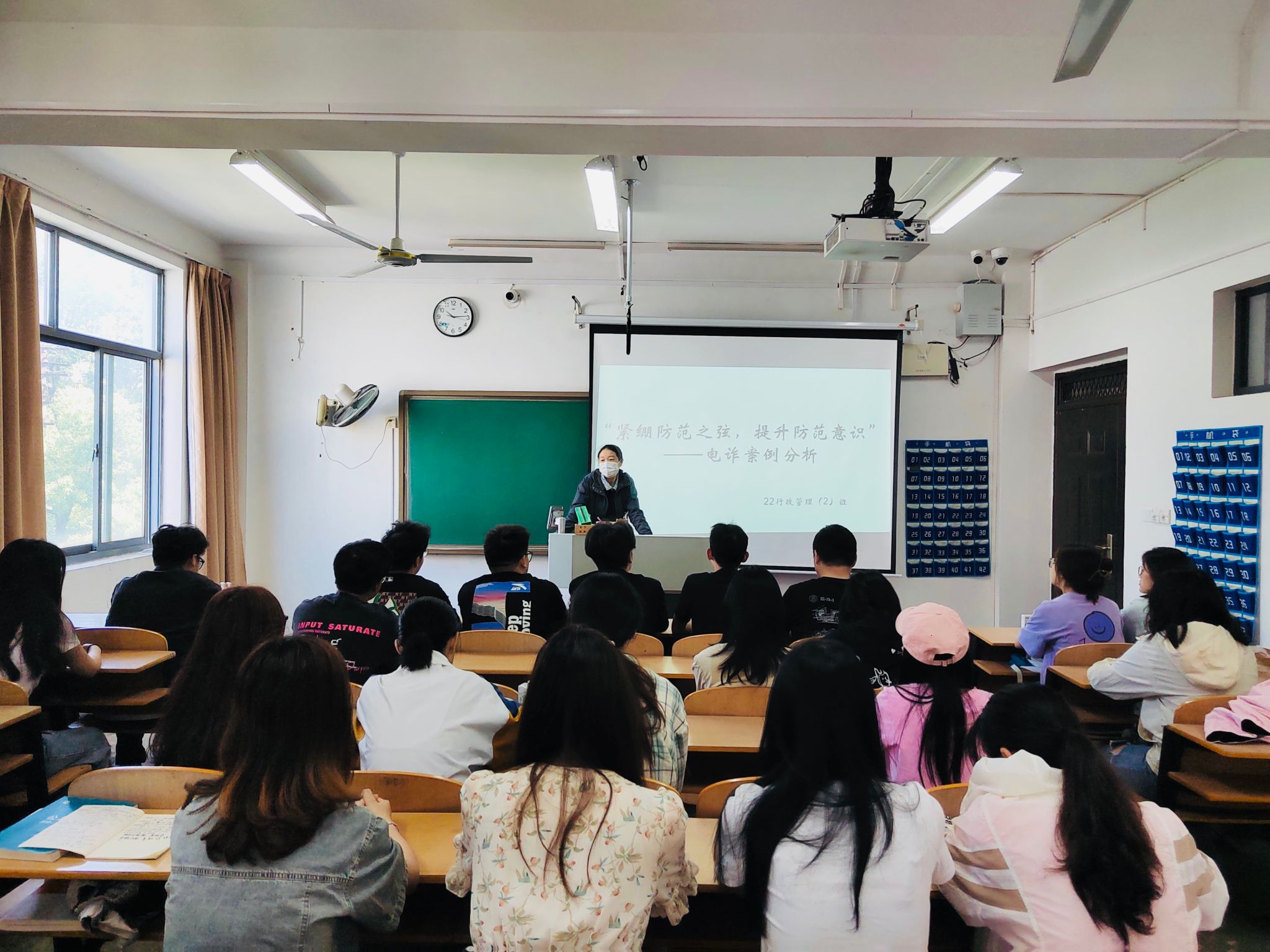 为了进一步提高同学们的防范诈骗安全意识,持续营造“人人识诈、全民反诈”的浓厚校园氛围。5月16日至25日,人文学院各班级开展了反电诈主题班会。