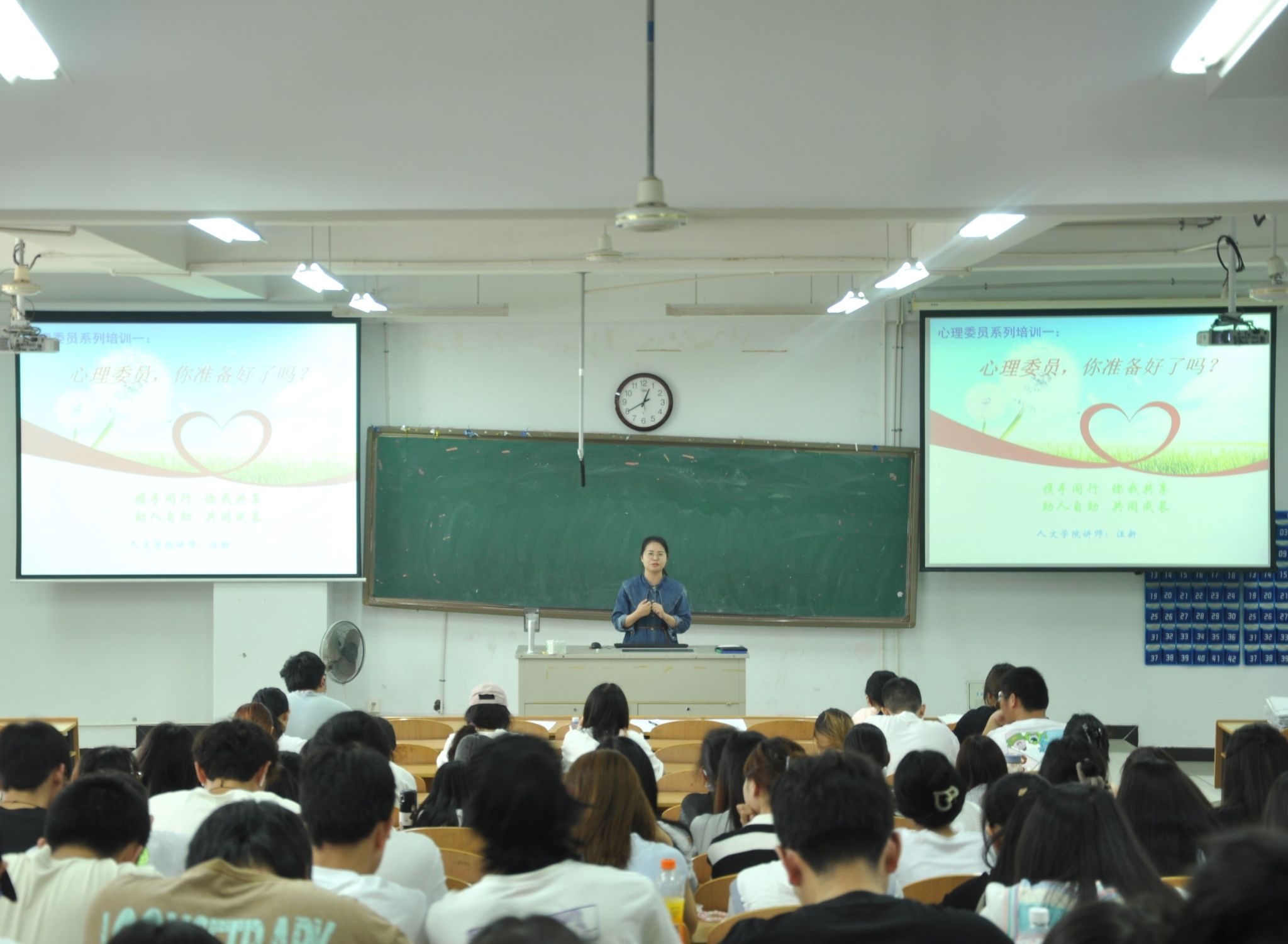 为进一步关注和提升学生心理健康教育水平,强化学院心理服务体系建设,人文学院于5月31日中午在图教楼B201举办了学院心理委员培训会。我院心理辅导站汪新老师作为主讲,与各班级心理委员、宿舍心情联络员一起参加了活动。