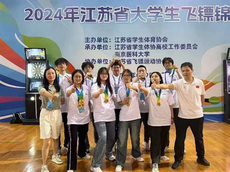 6月7日至9日,2024年江苏省大学生飞镖锦标赛在南京医科大学举行,来自全省41所高校的近500名运动员、教练员、裁判员参与比赛。我校飞镖队共9名队员参加了本科组(甲组)比赛。