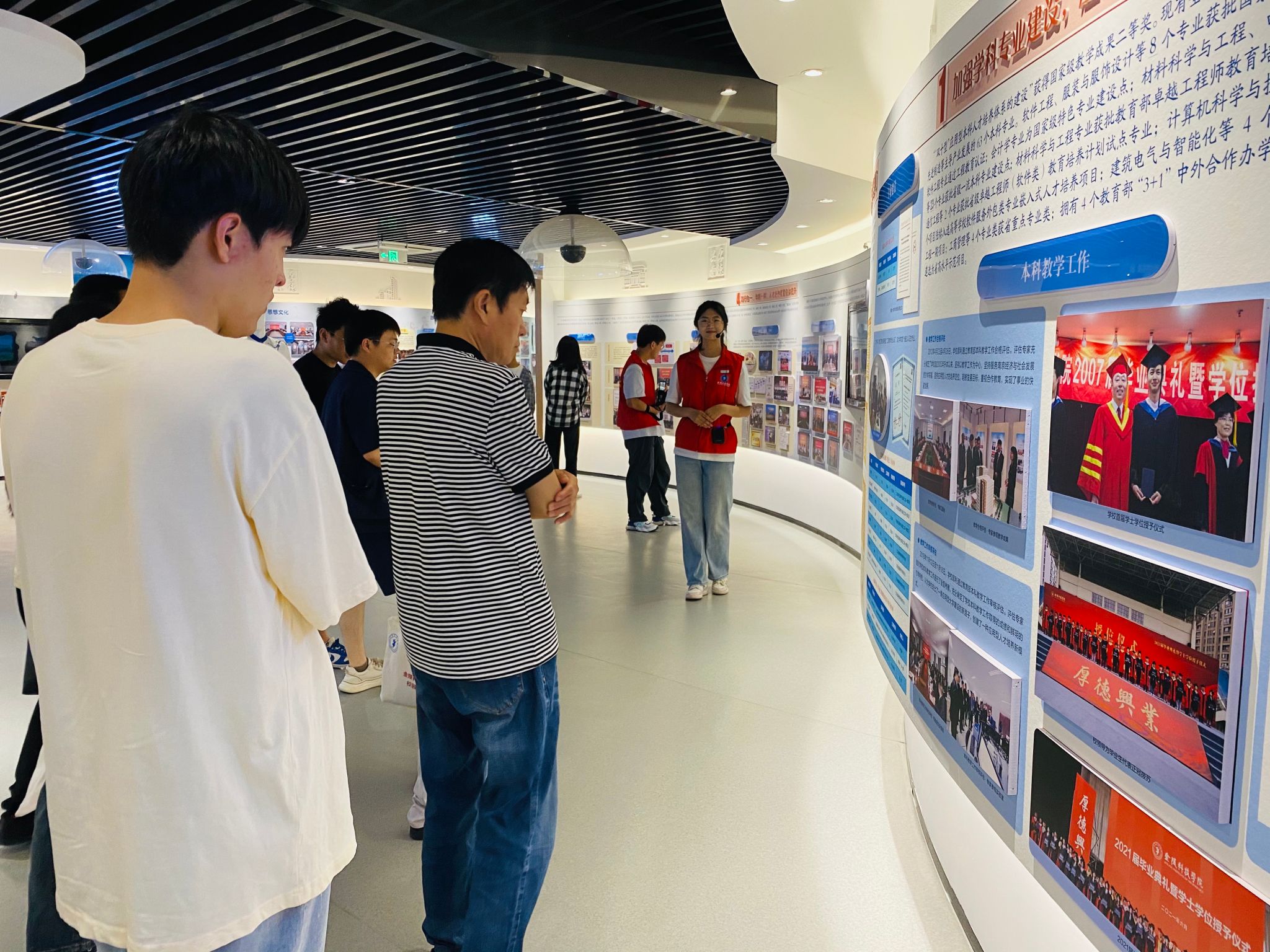 会后,校友们参观了校史馆,一页页的文字,一幅幅的图片,一张张的证书,生动形象地展示了学校的历史和发展,也让校友们了解到母校建设的累累硕果。校友们在学院的精心组织下,参观体验了学院特色实验室,感受依托数智化平台建设的专业发展和学科建设。