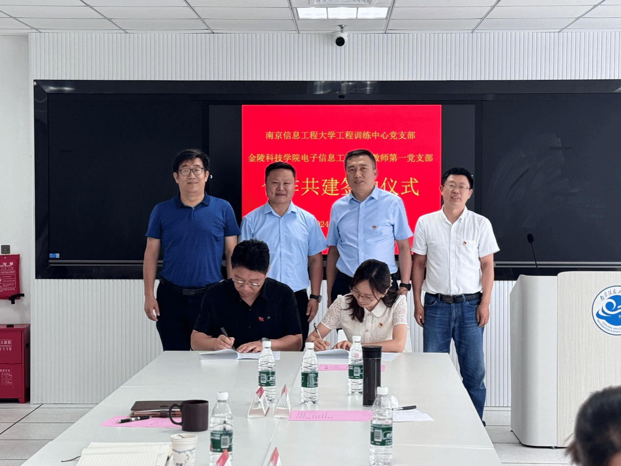 在学习交流会上,庄建军全面介绍了工程训练中心在实验室建设、课程建设和学科竞赛等方面的成绩和经验,电子信息工程学院院长胡国兵介绍了我校历史、学院专业设置和实验中心特色。与会教师代表就如何更好地培养学生创新能力、提升电子竞赛水平和创新教育模式改革等问题进行了深入交流。我院教师第一党支部书记陶永会与南京信息工程大学工程训练中心党支部书记张雅男签署了党支部合作共建协议,双方将在党建共建合作的基础上展开全面的密切合作。郭杨表示,南京信息工程大学始终秉持着开放办学、联合办学、特色办学的先进理念,希望通过党建共建能把共同的资源、共同的需求对接好,推动双方合作交流走实走深。