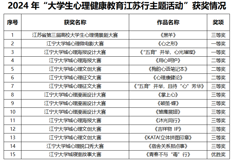 活动期间,我校组织辅导员参加了全省高校心理危机干预骨干教师专题培训、高校心理辅导员问题管理家(PM+)谈心谈话技能培训、心理健康音乐疗愈技术培训等;依托江宁大学城的区域心理健康教育资源,承办了江苏省江宁大学城大学生心理健康教育研究中心的高校专兼职心理咨询师督导活动;积极搭建省、区级心理活动平台,组织学生参加了江苏省和江宁大学城各级各类比赛,成果丰富,多措并举,提升学生心理健康水平。