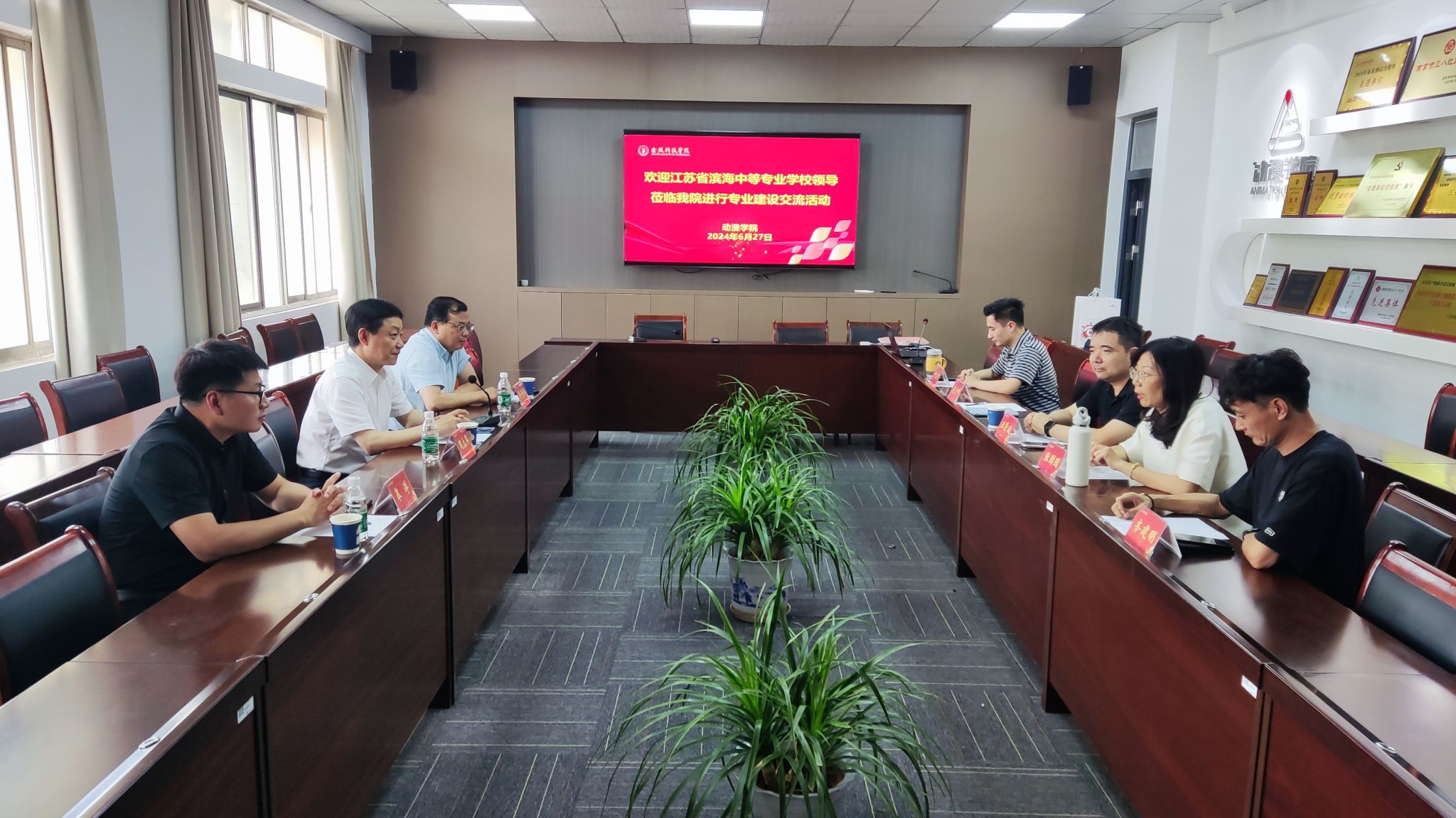6月27日下午,江苏省滨海中等专业学校党委书记周立军、副校长蒋奇兵、数字媒体技术专业负责人皋洋一行到动漫学院开展专业建设交流。动漫学院院长王贤波、动画系主任张园园、动画系副主任李少峰、数字媒体艺术专业教师齐建明、动画专业教师叶骁郁参加座谈。