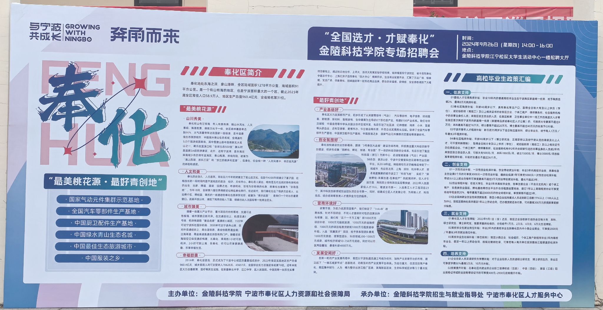 9月26日下午,“全国选才 才赋奉化”开云在线专场招聘会成功举办。此次招聘会在宁波市奉化区人才服务中心的大力支持下,吸引了宁波利安科股份有限公司、宁波索诺工业自控设备有限公司等11家当地优质企业参会,涵盖智能制造、电子信息、新能源、金融、建筑、酒店管理等多个行业。