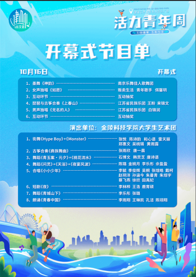 10月16日晚,我校大学生艺术团在西城·夜未央活力街区,参与了由建邺区文化和旅游局、建邺高新区管委会等多方联合举办的“活力青年周”开幕式活动。本次活动旨在构建一个专属于青年人的展示平台,让他们能够尽情释放才华,深刻体验音乐的无限魅力,并充分展现青年群体独特的人文精神与风貌。