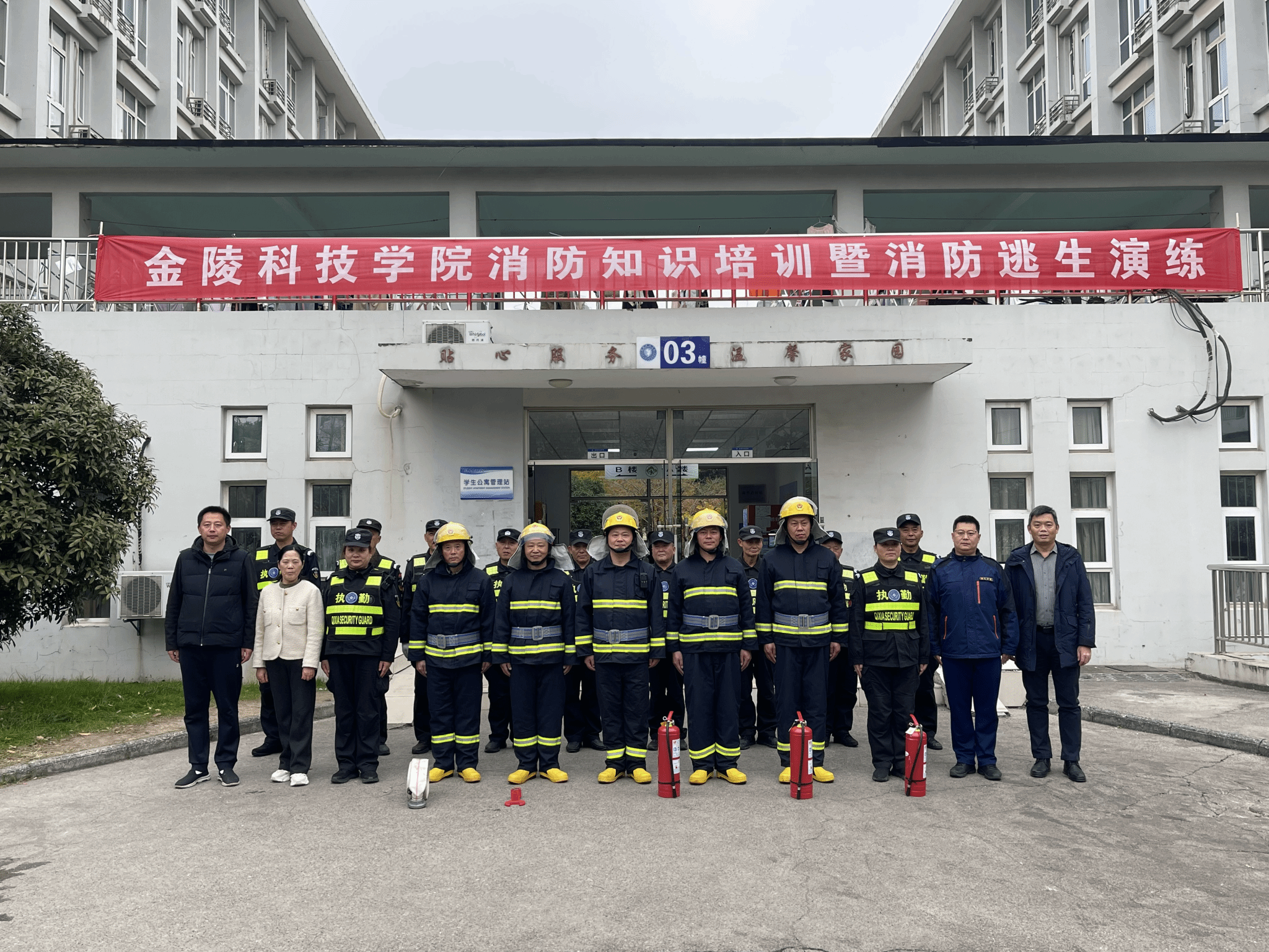 为帮助师生员工熟练掌握消防安全知识和技能,提升其消防安全意识,增强其火灾自防自救能力,12月4日下午,我校在幕府校区组织开展2024年秋冬季消防知识培训暨消防逃生演练活动。迈皋桥消防救援站指导员朱新宸、校保卫处副处长卓士磊至现场开展指导。