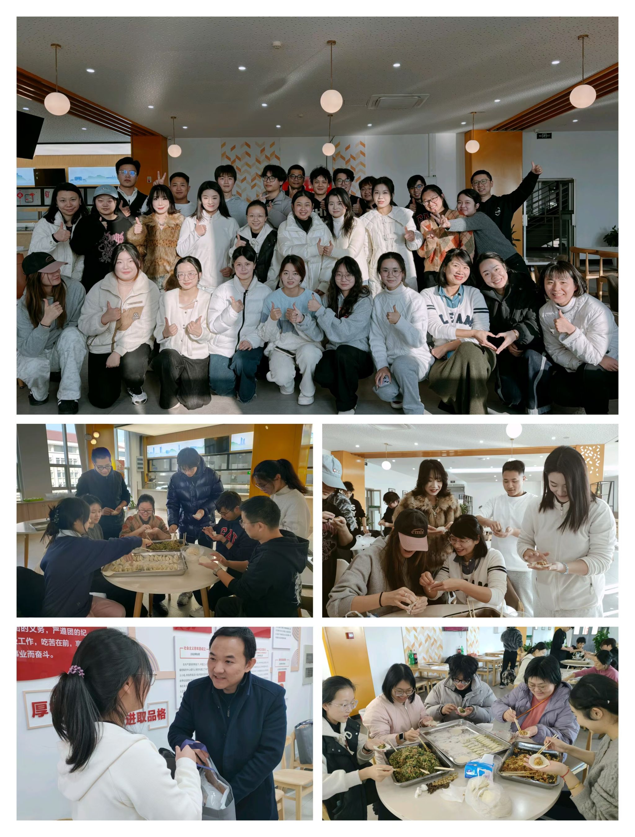 年华流转,冬至将至,温情满溢于艺术学院。12月20日,艺术学院于南08一站式社区和南区食堂三楼成功举办“心有暖阳,饺香情长”“一院一品”冬至包饺子特色活动。院党委书记、院长匡才远,副书记鲍锐,副院长黄向群、综合办公室主任王健华,学工办主任丛扬子,全体辅导员,部分教师、班主任、学生代表共40余人参加活动。