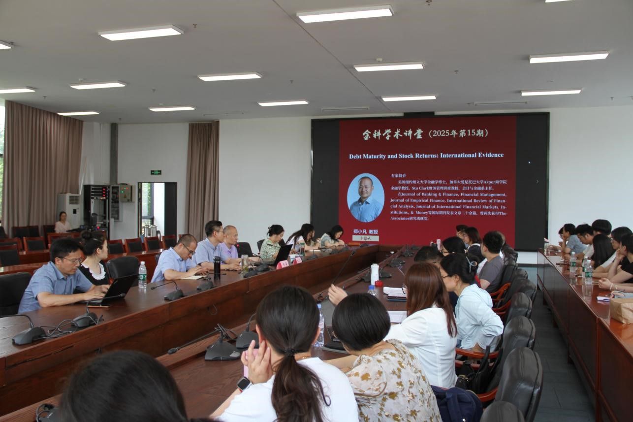6月18日下午,2025年第15期金科学术讲堂于江宁校区3号科技楼110会议室成功举办。本次学术讲堂由科技处、教师发展中心主办,商学院承办,邀请到加拿大曼尼托巴大学郑小凡教授为我校师生开展题为《Debt Maturity and Stock Returns: International Evidence》的学术讲座,学院部分科研骨干教师以及专硕研究生共50余人参加了此次讲座。讲座由商学院院长刘磊主持。