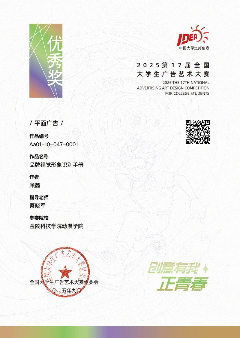 省赛优秀奖 | 品牌视觉形象识别手册 | 顾鑫 | 蔡晓军 |