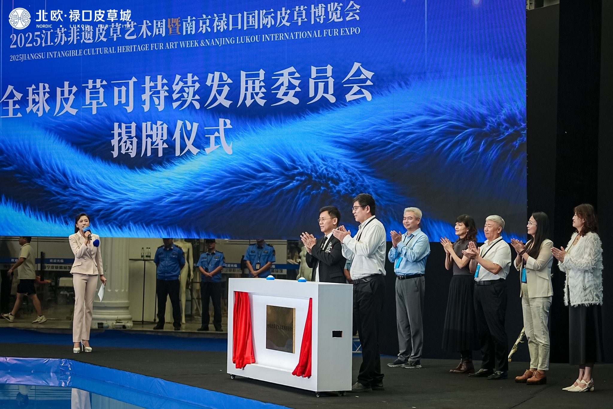 9月27日,2025江苏非遗皮草艺术周暨南京禄口国际皮草博览会在南京禄口举办。艺术学院副院长黄向群教授和江苏企商投资管理有限公司、北欧·禄口皮草城董事长张勉上台为全球皮草可持续发展委员会揭牌。中国畜产品流通协会副会长、党支部书记刘鹤东,中国食品土畜进口商会兼职副会长、裘皮分会理事长冯宝兴,中国皮革协会秘书长张燕,国际毛皮协会中国区CEO王晶和哥本哈根拍卖行首席营销官崔溢云作为嘉宾共同见证了揭牌仪式。