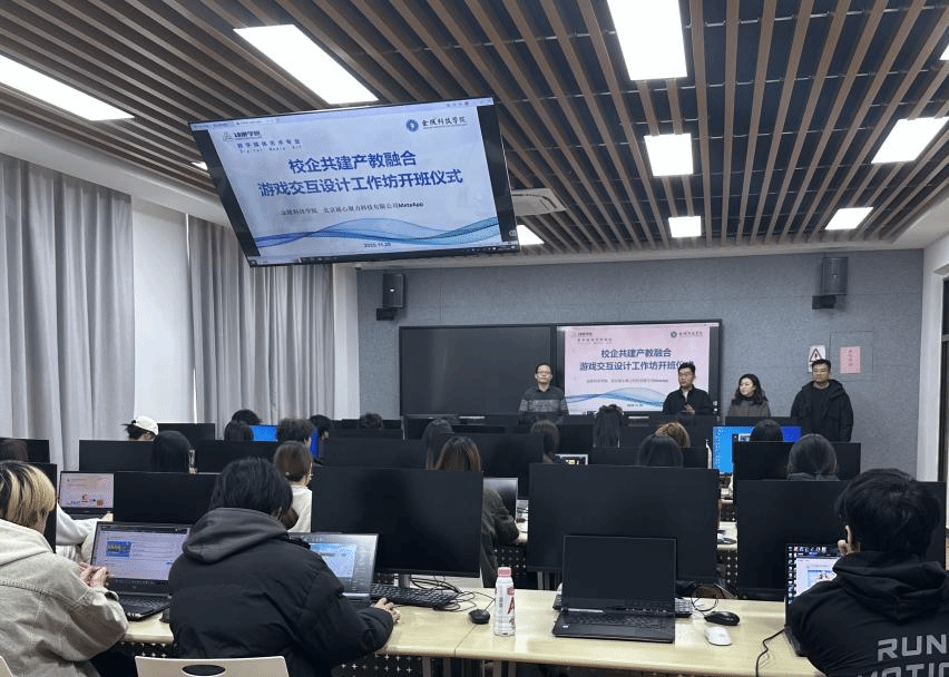 11月20日下午,我校动漫学院数字媒体艺术系与北京展心展力信息科技有限公司(简称MetaApp)在动漫学院7305共同举行了校企共建产教融合游戏交互设计工作坊开班仪式。北京展心展力信息科技有限公司总监刘锋、企业导师罗鉴,数字媒体艺术系主任周安涛、教师沈妙及学生代表,共同参加了此次开班仪式。