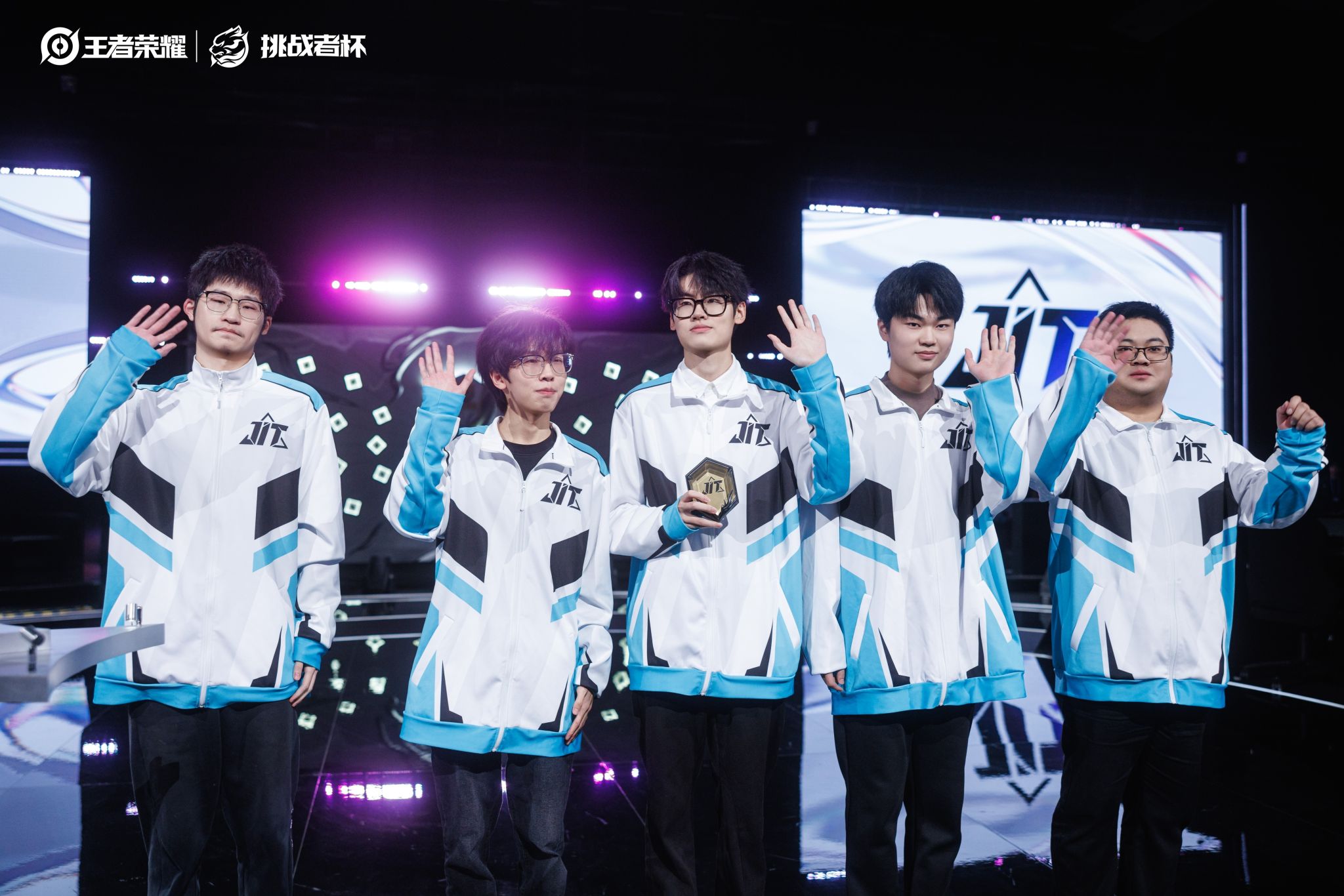 JIT战队的首场比赛于12月9日18:00进行,对手是本次赛事的3号种子——来自KPL赛道的北京WB战队。面对双方实力存在客观差距,JIT战队在赛场上毫无惧色,敢打敢拼。一波波精彩的团战配合、一次次果断的出击击败,不断点燃现场气氛,赢得观众阵阵喝彩。