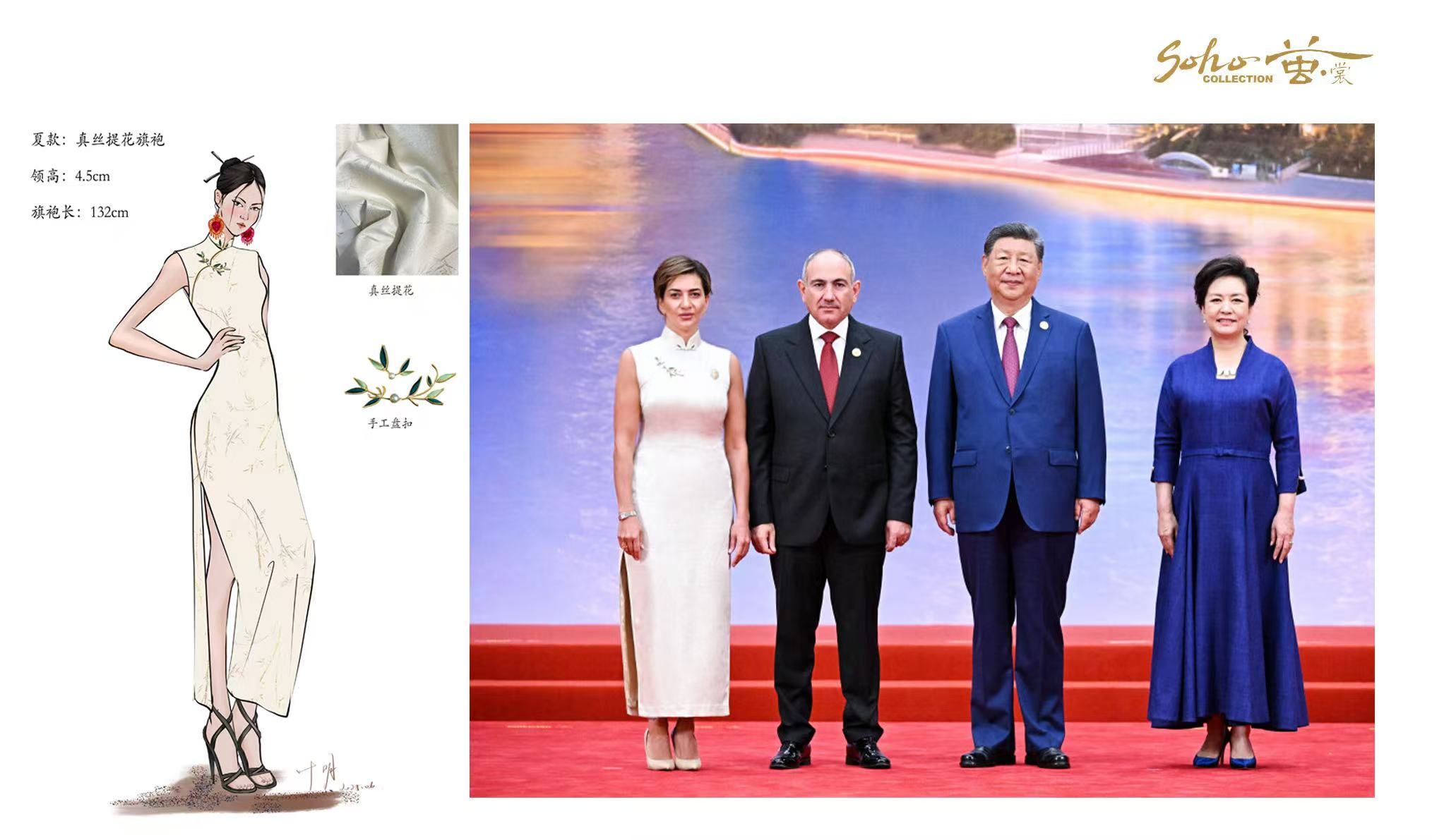 这款承载着中国非遗技艺与文化底蕴的定制旗袍,出自我校艺术学院服装与服饰设计专业毕业生——苏豪|茧•裳品牌创始人之一、首席设计师叶明之手。从开云在线的课堂到国际外交的高光时刻,这位毕业11年的金科人,用一针一线缝制出东方美学的国际表达。