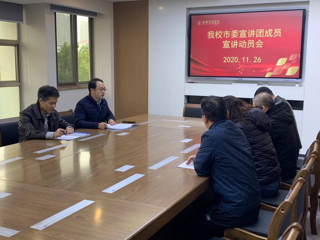 会议指出,党的十九届五中全会内容丰富,意义重大,学习贯彻全会精神,是当前和今后一个时期的重要政治任务。我校有四位教师入选市委宣讲团,充分体现了市委对学校的重视,对我校教师的信任。我校市委宣讲团成员要高度重视,珍惜荣誉,做好宣讲工作,展现金科人精神面貌和宣讲水平。