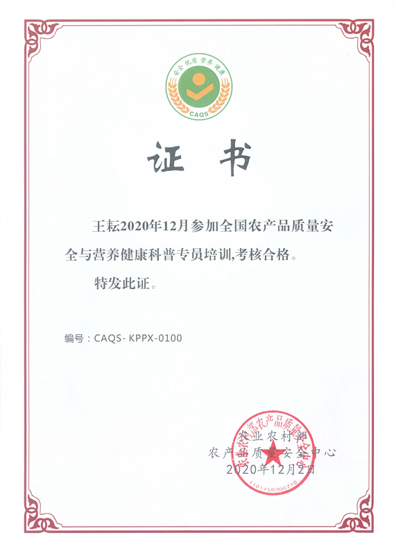 近日,农业农村部农产品质量安全中心确认了第二批全国农产品质量安全与营养健康科普工作站及科普专员名单,由园艺园林学院牵头,联合继续教育学院和动物科学与技术学院申报的“全国农产品质量安全与营养健康科普工作站”成功获批,同时我校王耘老师成功获批“全国农产品质量安全与营养健康科普专员”。