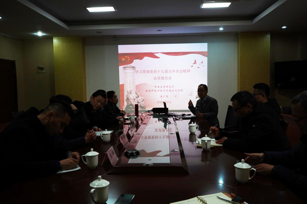 12月18日,继续教育学院在幕府校区图书馆会议室举行军队转业干部进高校专项培训座谈会暨党的十九届五中全会精神宣讲会。江苏省退役军人事务厅安置处一级调研员居志群、二级调研员陈燕,继续教育学院院长陈玉林,人文学院、网通学院教师代表及2020级全体参训学员参加了会议,并邀请市委宣讲团成员、马克思主义学院副教授秦广东为学员进行了十九届五中全会精神宣讲。