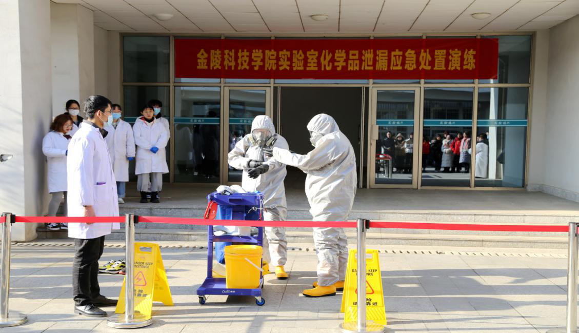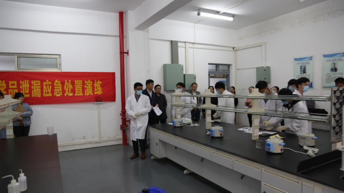 为进一步规范实验室危险化学品安全管理,防范使用危险化学品引发的各类事故,我校先后于11月20日、12月17日举办了两场实验室危险化学品安全管理培训及泄漏应急处置演练。教务处、科技处、设备处、保卫处、园艺园林学院、动物科学与技术学院、材料工程学院、理学院等单位200余师生参加了演练。