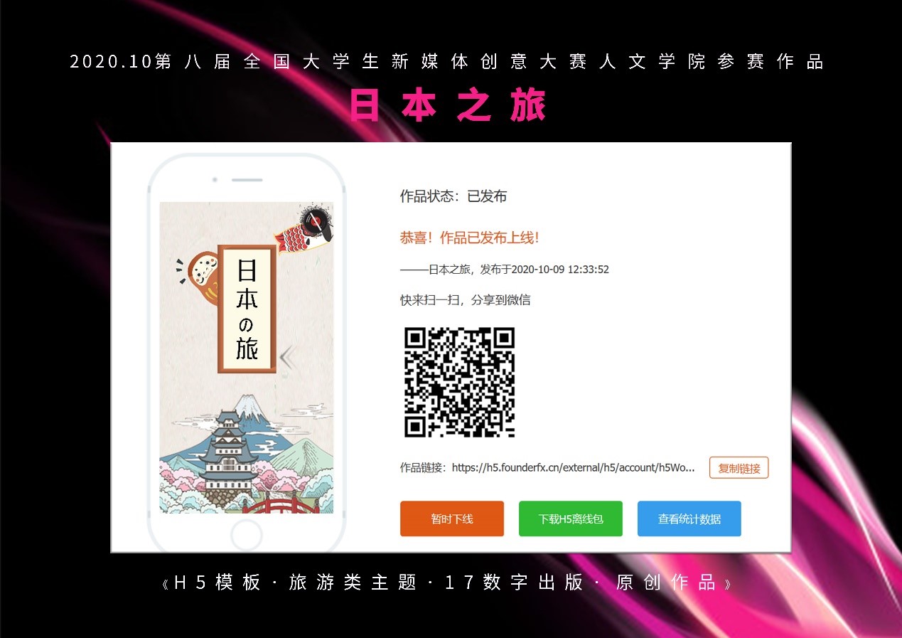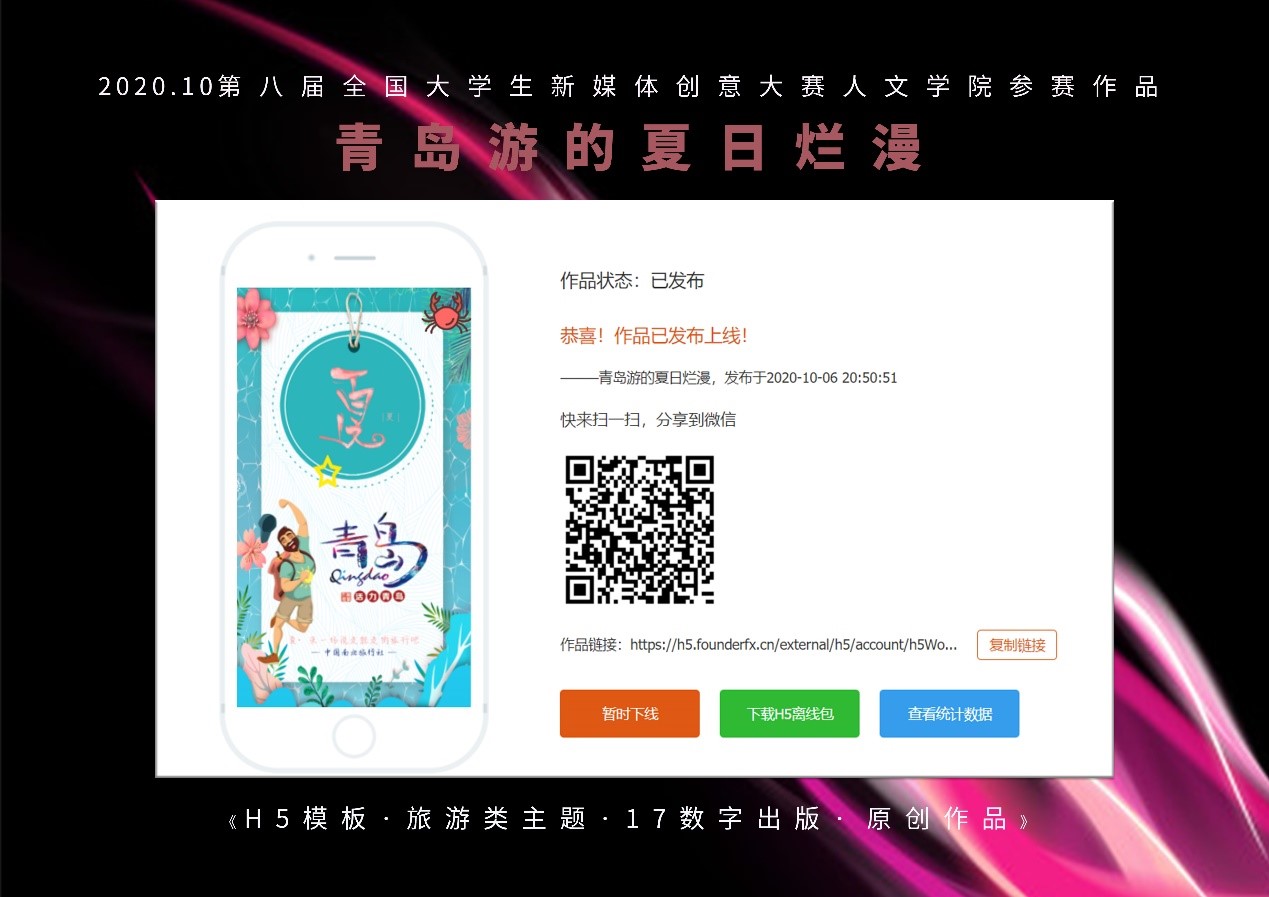 3月4日,第八届大学生新媒体创意大赛获奖名单揭晓。我校人文学院数字出版专业共有3部作品获奖。其中18数字出版(1)班刘思琪、刘梦欣、许蛟波的H5作品《项链》在“书香作伴·阅读随行”主题的比赛中获二等奖,17数字出版(1)班刘冰的《日本之旅》、丛若楠的《青岛游的夏日烂漫》分别获得HTML5模板设计三等奖。