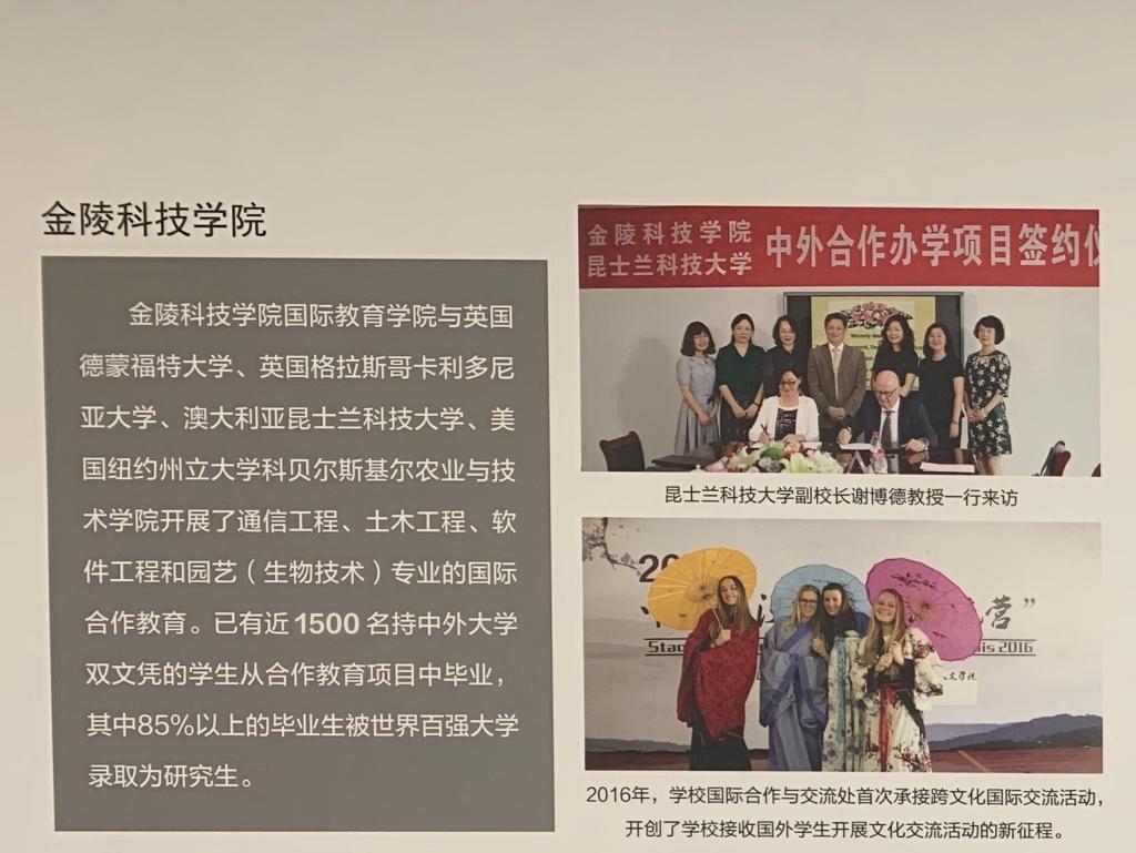 洽谈期间,江宁区人民对外友好协会带领李响一行参观了“江宁对外开放展”,我校国际教育事业开展情况在该展览教育版块展出。
