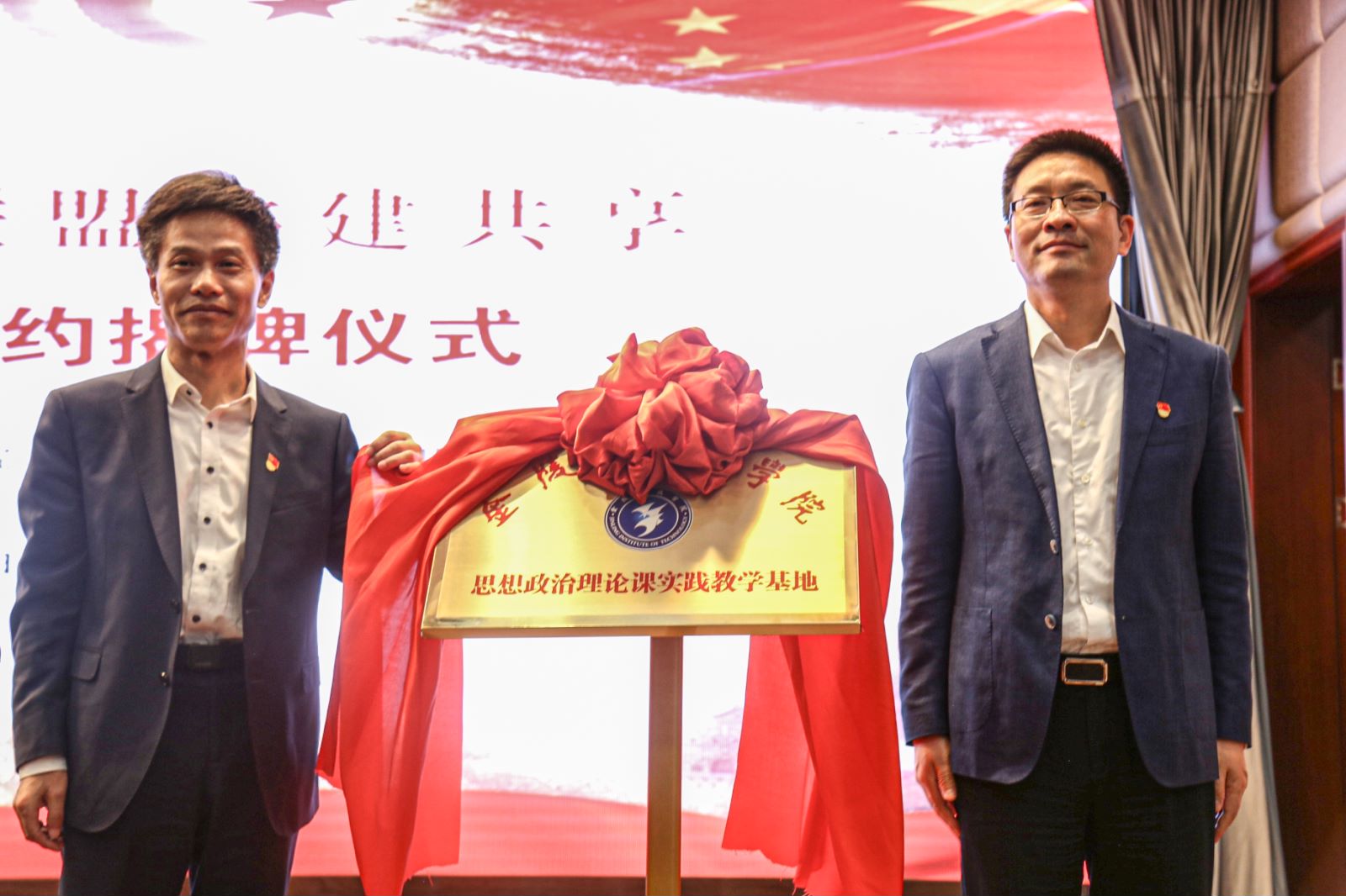 王思涛、仇金标代表校馆双方签订了《思想政治教育基地共建协议书》并共同为基地揭牌。根据协议,双方将依托新四军纪念馆这一培养爱国情感、培育民族精神的重要阵地,用好新四军铁军精神这一宝贵的精神财富,开展系列教育实践活动,共同上好党史学习教育 “必修课”,引导激励广大师生坚定理想信念,引导广大青年学生读懂党史这部最好的教科书,做到学史明理,学史增信,学史崇德,学史力行,努力成长为担当民族复兴大任的时代新人。