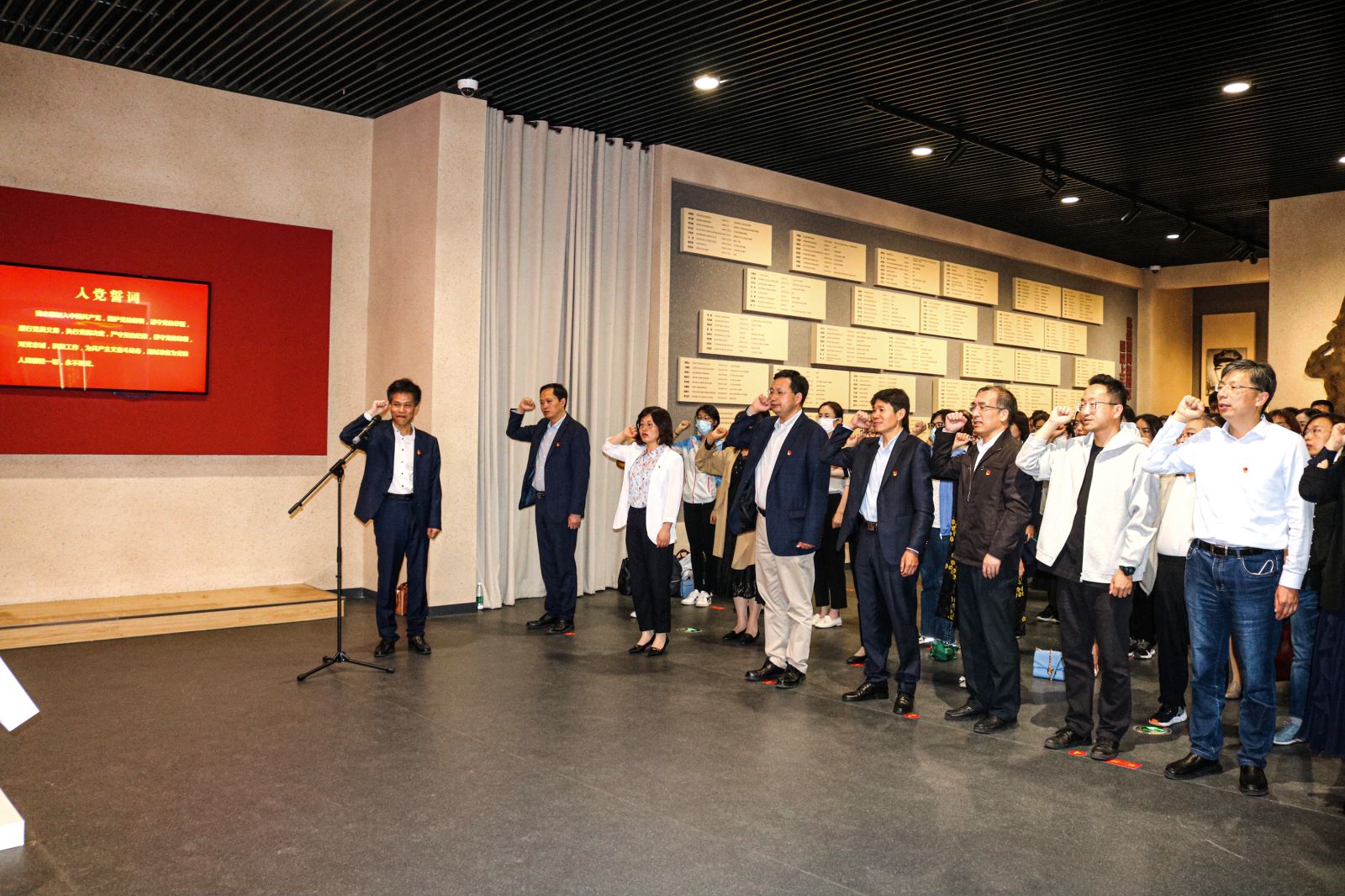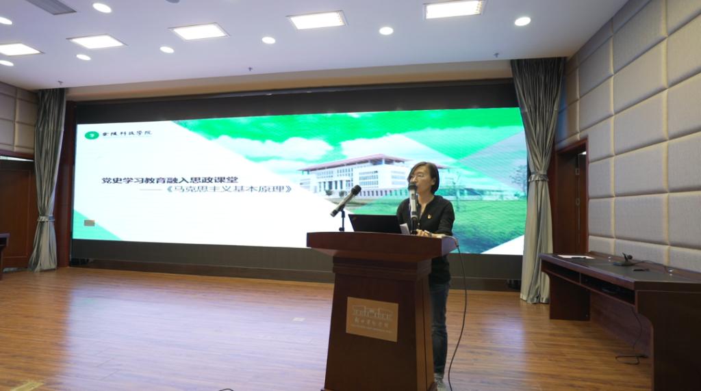 签约仪式开始前,全体思政课教师参观了新四军纪念馆,共同追忆新四军艰苦卓绝的战斗历程,缅怀革命先烈先进事迹,深刻感受伟大的新四军铁军精神。“我志愿加入中国共产党,拥护党的纲领,遵守党的章程……”面向鲜红的党旗,王思涛带着大家高举右拳重温入党誓词,接受精神洗礼。马克思主义学院“原理”课教研室主任李华在新四军纪念馆报告厅开展了“党史学习教育融入思政课堂——《马克思主义基本原理》”微党课教学。