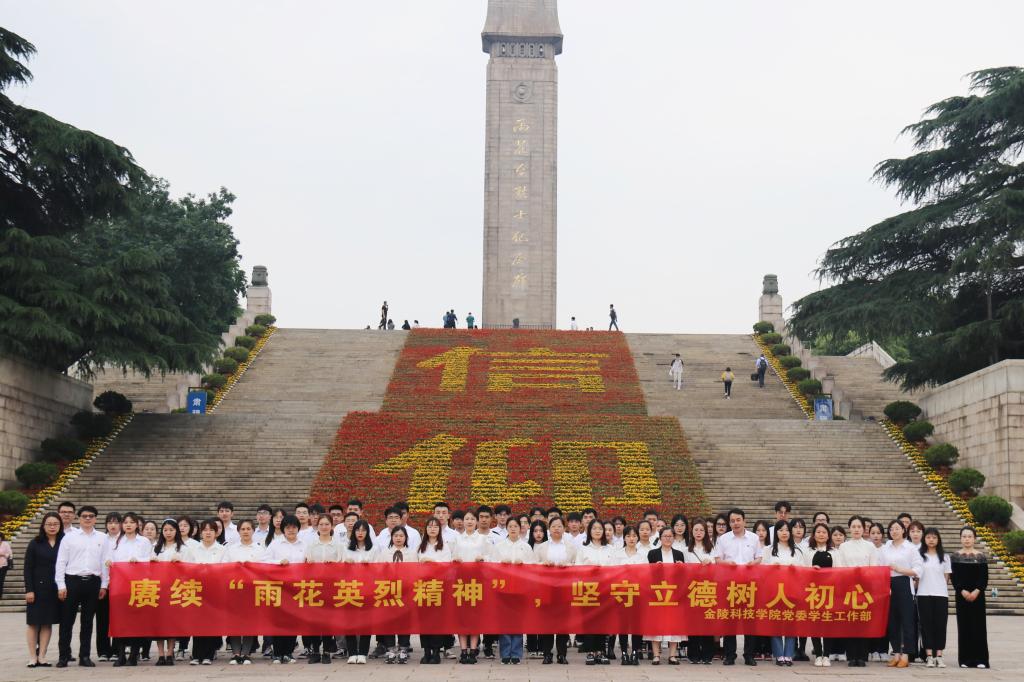 雨花台烈士陵园,是中华人民共和国成立后建立最早、规模最大的国家级烈士陵园,也是南京地区最重要的爱国主义教育和红色教育基地。师生们在雨花台烈士纪念碑前,向革命烈士敬献花圈,默哀致敬,并重温入党誓词,在党旗下接受心灵净化和深刻洗礼。