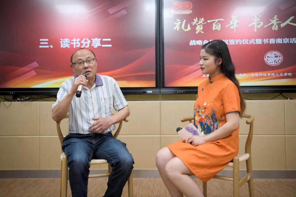 活动围绕“学习中国共产党百年党史,激励新时代青年矢志奋斗”展开。南京市档案馆与人文学院签订了战略合作协议,双方将进一步密切合作,充分整合双方人才、科研资源,实现优势互补、联合发展。在读书分享会环节,南京市档案馆青年党员代表和人文学院学生代表,诵读了1949年4月《新华日报》上刊登的南京解放前夕工人学生护厂护校新闻报道,通过分享读书感悟,现场观众真切感受到了“龙蟠虎踞今胜昔,天翻地覆慨而慷”的新时代的到来。人文学院学生代表还朗读了金陵职业大学创办人、第一任校长朱刚的回忆录。朱刚同志次子朱立先生表示,学校在朱刚影响下自力更生,不断探索,为地方政治、经济、文化发展培养了一大批优秀人才。
