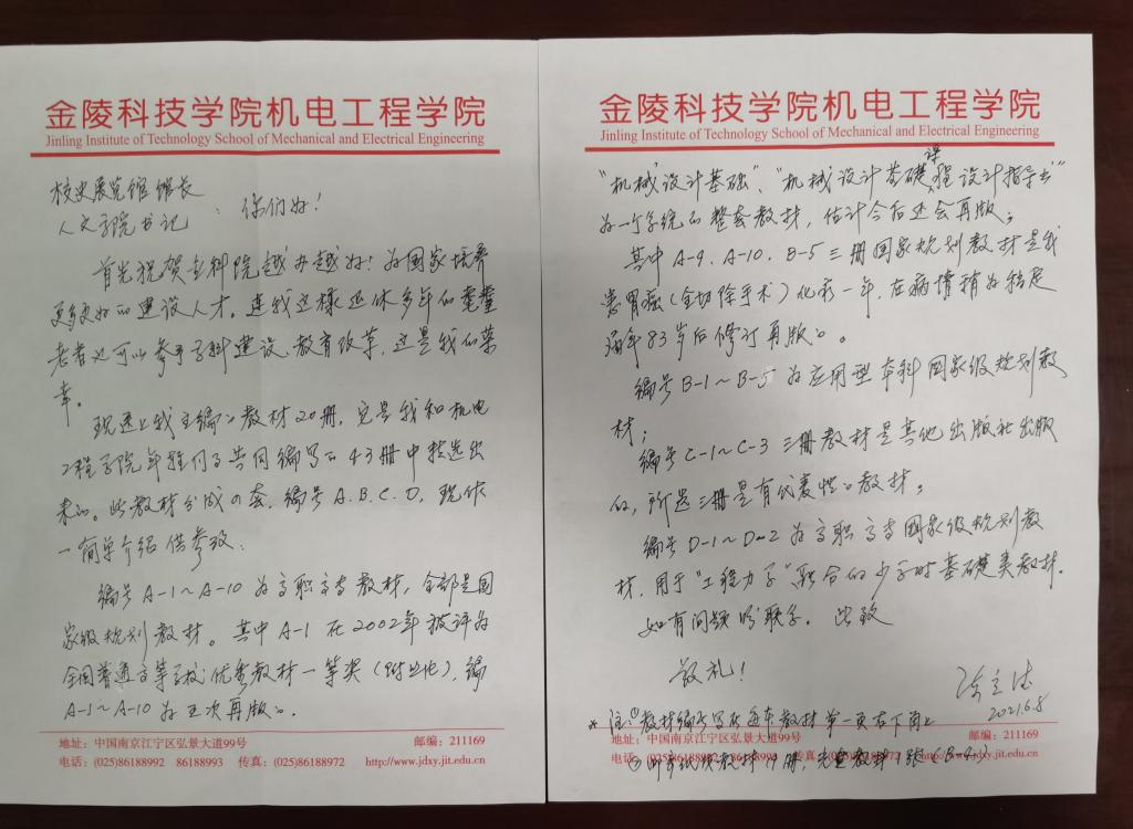 近日,档案馆收到一份来自上海的快递,里面整整齐齐地摆放着我校退休老教授陈立德主编的20册教材,还有他的一封亲笔信。