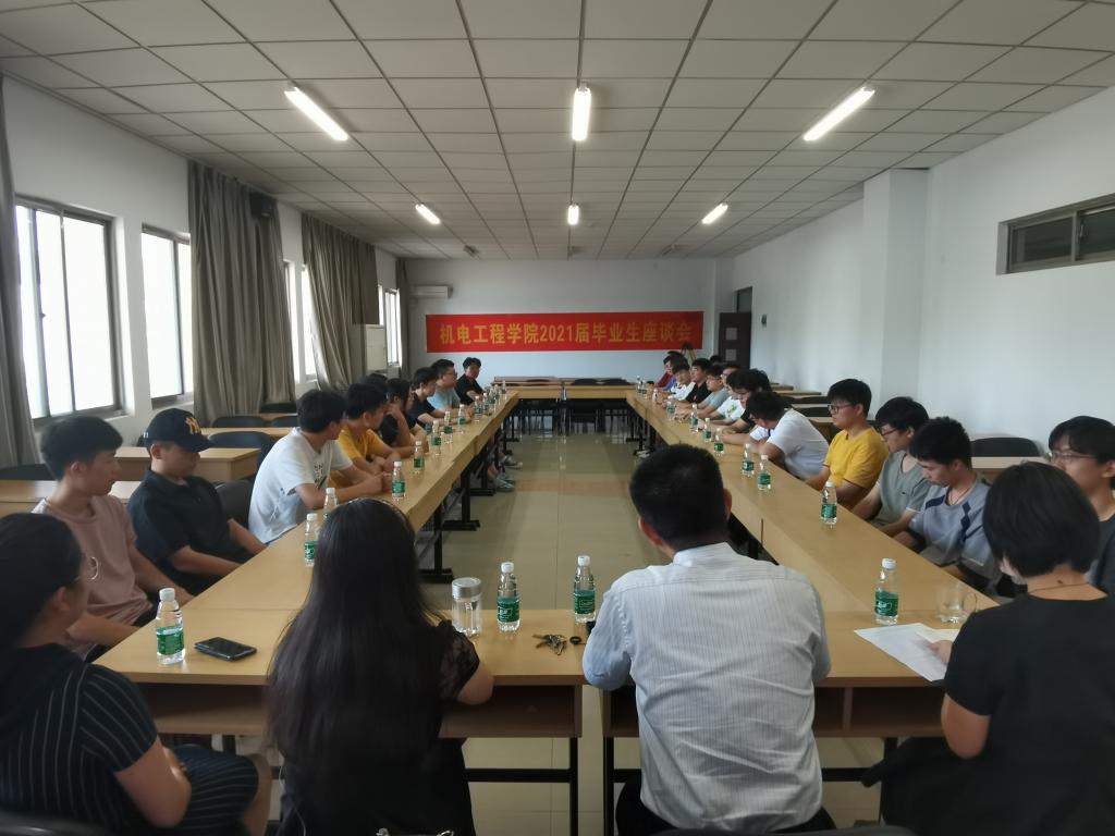 6月21日下午,机电工程学院2021届毕业生座谈会在工科楼C504会议室举行,学院党委书记吴钟鸣、学工办相关负责人、毕业班班主任、辅导员和毕业生代表参加了会议。