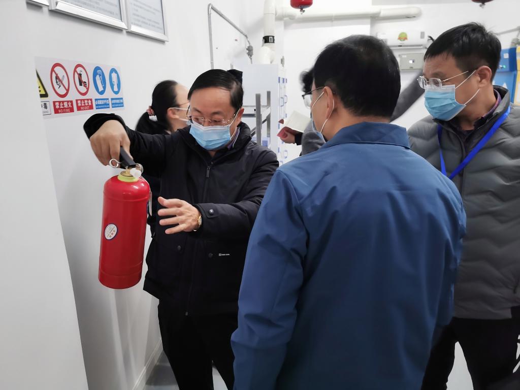 检查组一行对危化品储存室、危废暂存室、涉危实验室进行了实地检查,重点检查了危化品使用、存放、危废处置等全周期管理状况以及消防设施、安全防护用品配备等情况。