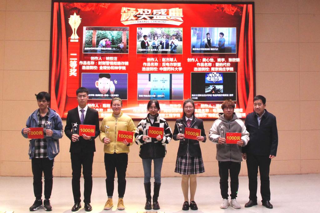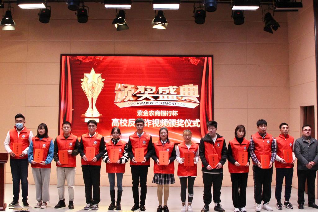 12月15日下午,“紫金农商银行杯”江宁大学城高校反电诈优秀视频颁奖仪式在南京传媒学院举行。本次比赛由江宁公安分局高新区派出所主办,共有13所高校100余支队伍参赛,赛事设置一等奖2项、二等奖6项、三等奖10项、优秀组织奖4项。