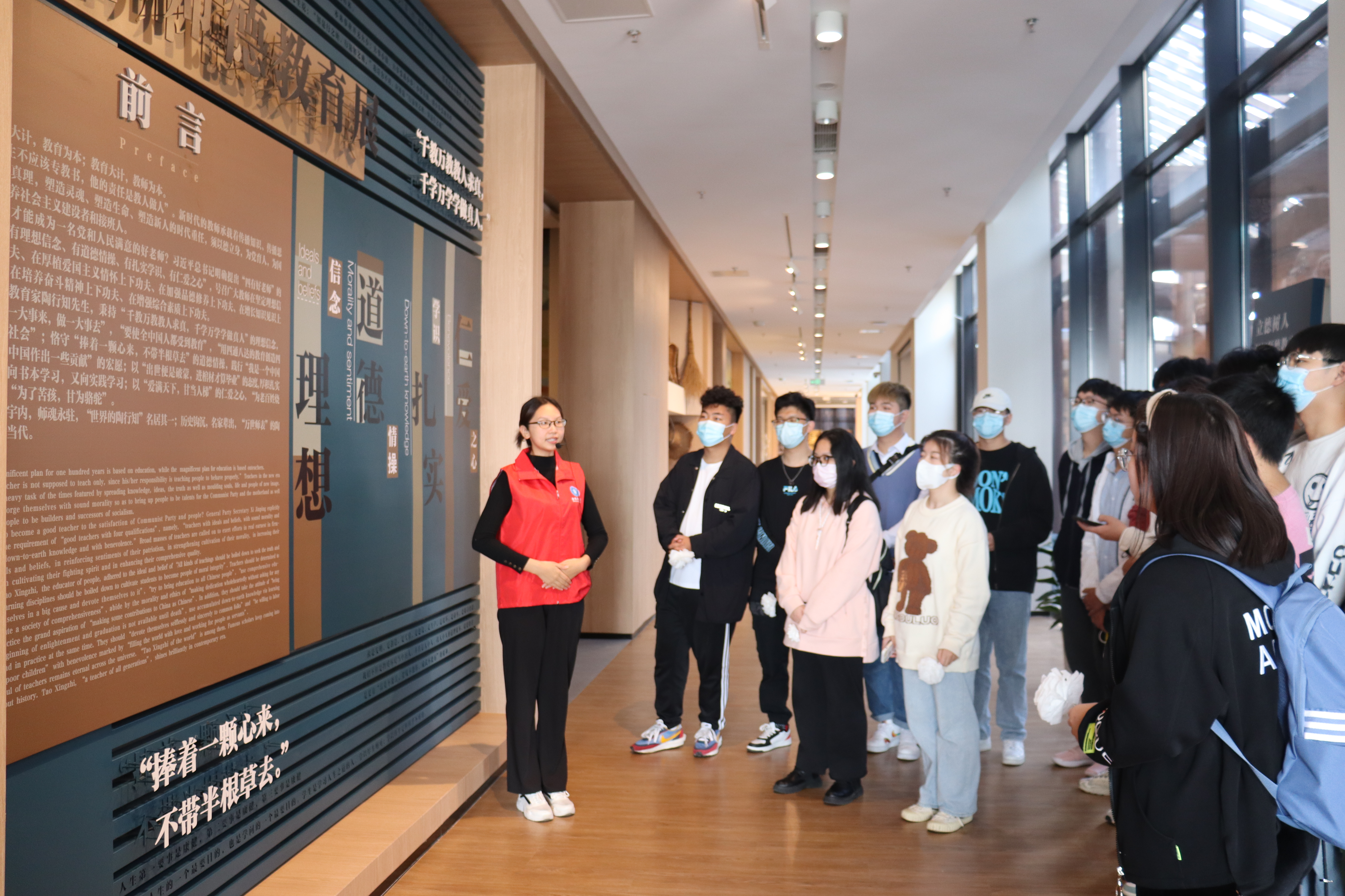 截至日前,人文学院陶馆志愿讲解队已有百余名学生,累计接待陶行知纪念馆参观者近五千人,受到了广泛好评。通过共建活动,人文学院陶馆志愿讲解队得到了专业的培训,践行了志愿精神,热情服务了多个学院、部门的参观学习,有力推动了学校师德师风教育持续走深走实。