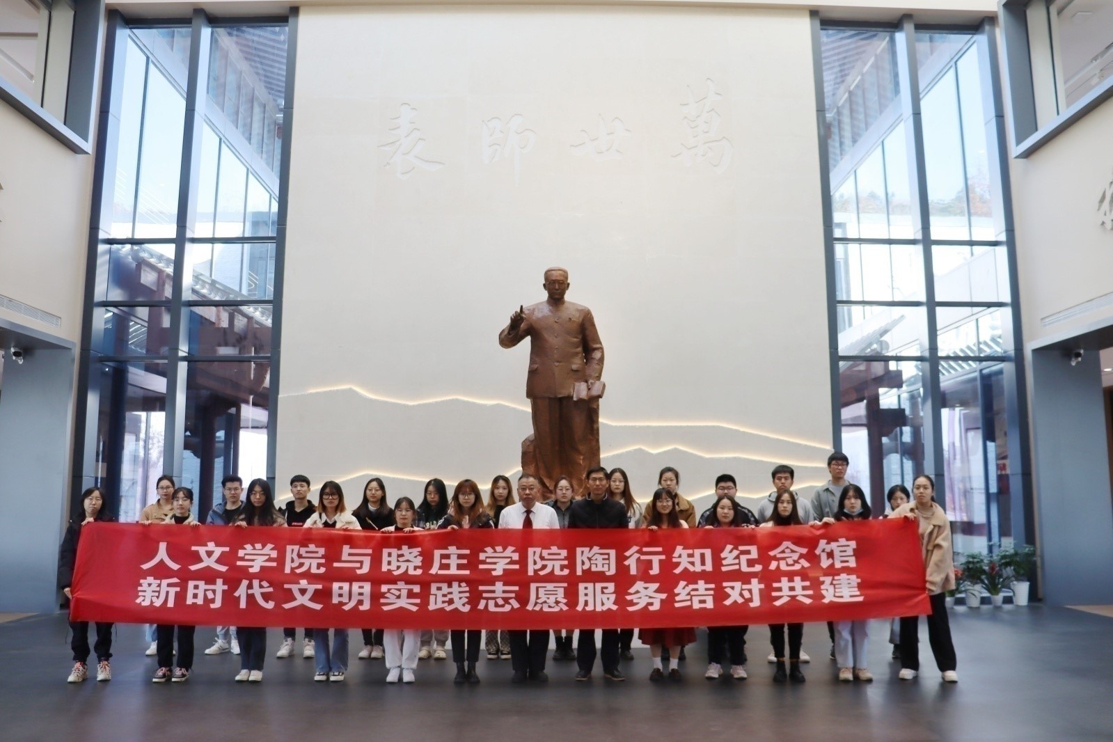 今年,人文学院旅游管理汉语国际教育学生党支部以陶行知先生诞辰130周年和陶行知纪念馆新馆开馆为契机,与晓庄学院机关党委陶行知研究院党支部开展党建共建活动,组建了人文学院陶行知纪念馆志愿讲解队,并在学院全体教师中大力开展师德师风教育。