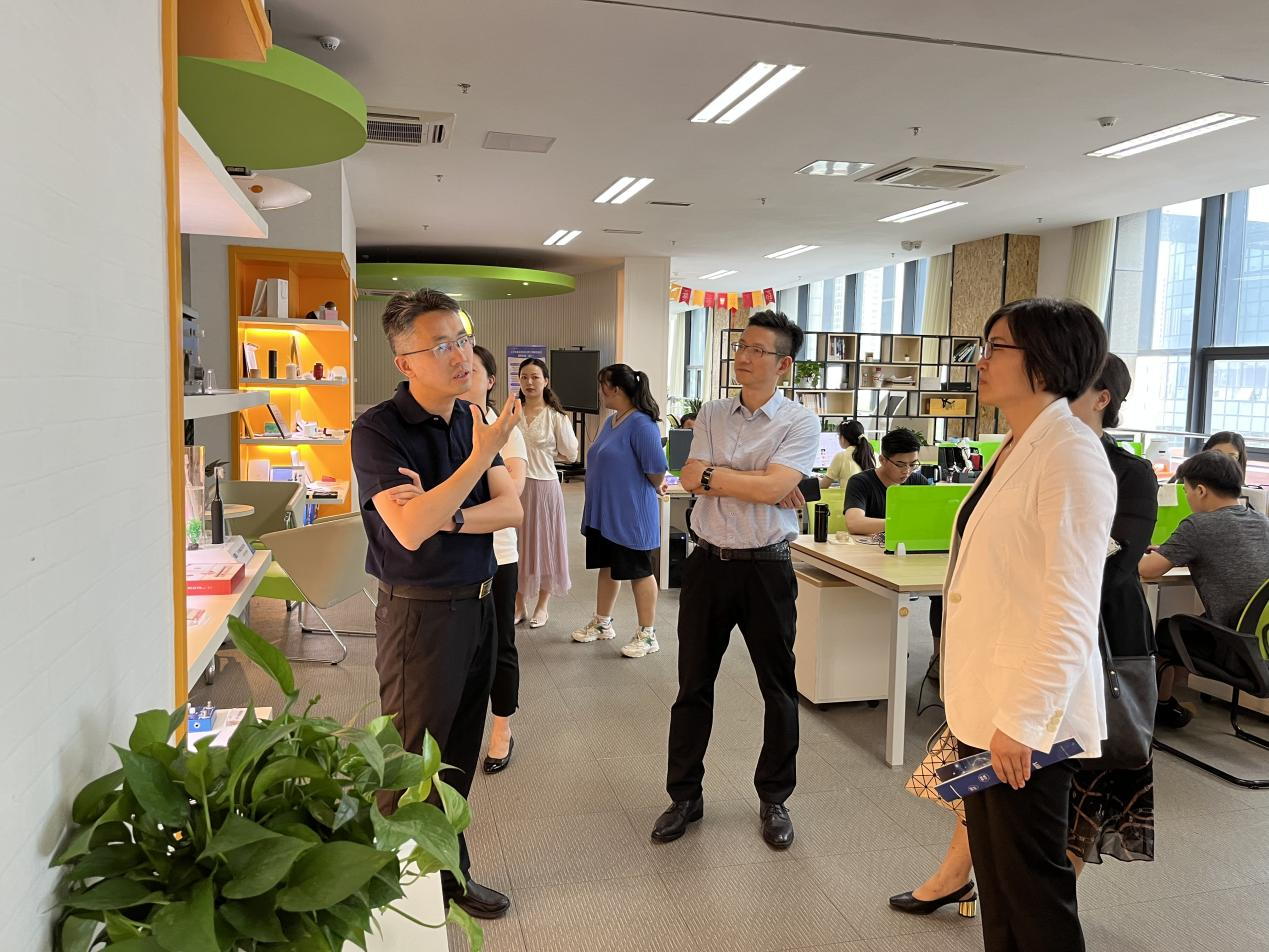 王文娟一行参观了入驻我校大学科技园的相关产学研合作平台。王文娟听取了大学科技园2021年绩效评价情况汇报后,对大学科技园在科技成果转化、创新创业人才培养等方面取得的成绩给予充分肯定,希望大学科技园依托江宁区产业集聚优势,加强创新项目扶持,进一步整合校地资源,为区域经济高质量发展作出更大贡献。