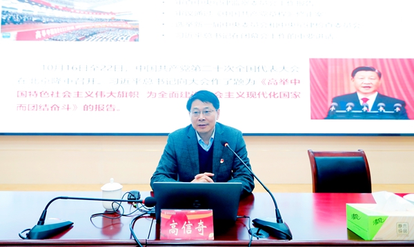 高信奇教授以《新时代新征程的政治宣言与行动纲领——学习贯彻党的二十大精神》为题,从“回顾过去:过去五年的工作和新时代十年的伟大变革”“展望未来:党的二十大精神的核心要义”“把握当下:学习好宣传好贯彻好党的二十大精神”等三个方面,以宽广的视野、朴实的语言、深刻的哲理,为学员们作了一场深入浅出又生动鲜活的辅导报告。他就如何学习好宣传好贯彻好党的二十大精神提出两方面建议:一是既要系统学习,又要把握重点;二是要坚持知行合一,贯彻落实决策部署。他勉励学员们在学习中不断增强理论自信,在实践中不断运用和发展,用实际行动贯彻落实好党的二十大精神。