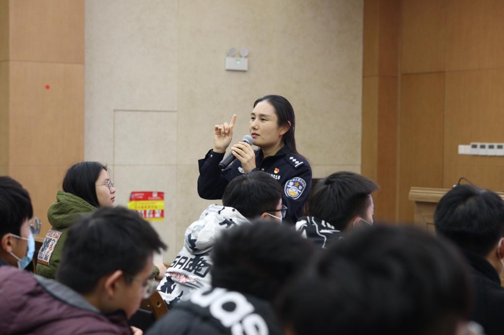李琳汇总了今年江宁大学城各高校的警情数和案件数,从校园盗窃、电信网络诈骗、校园毒品三方面解读了大量的典型案例,寓教于乐,教育大家要主动学习安全知识、提升防范技能,要善于观察、善于发现问题,要学会保护自己、保护他人。