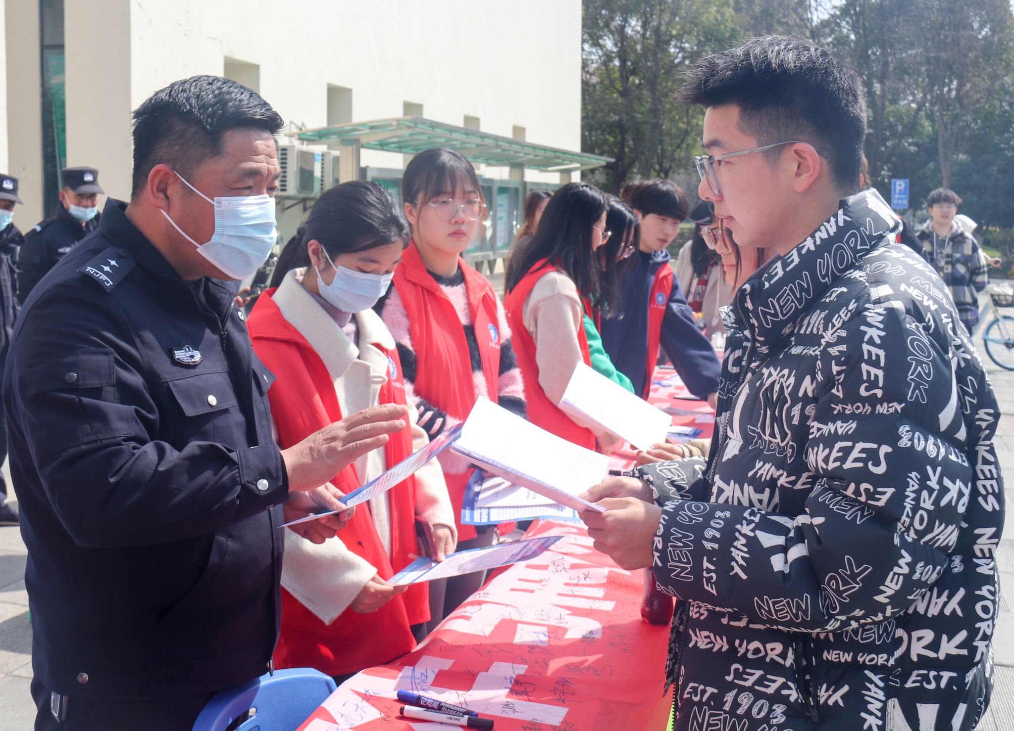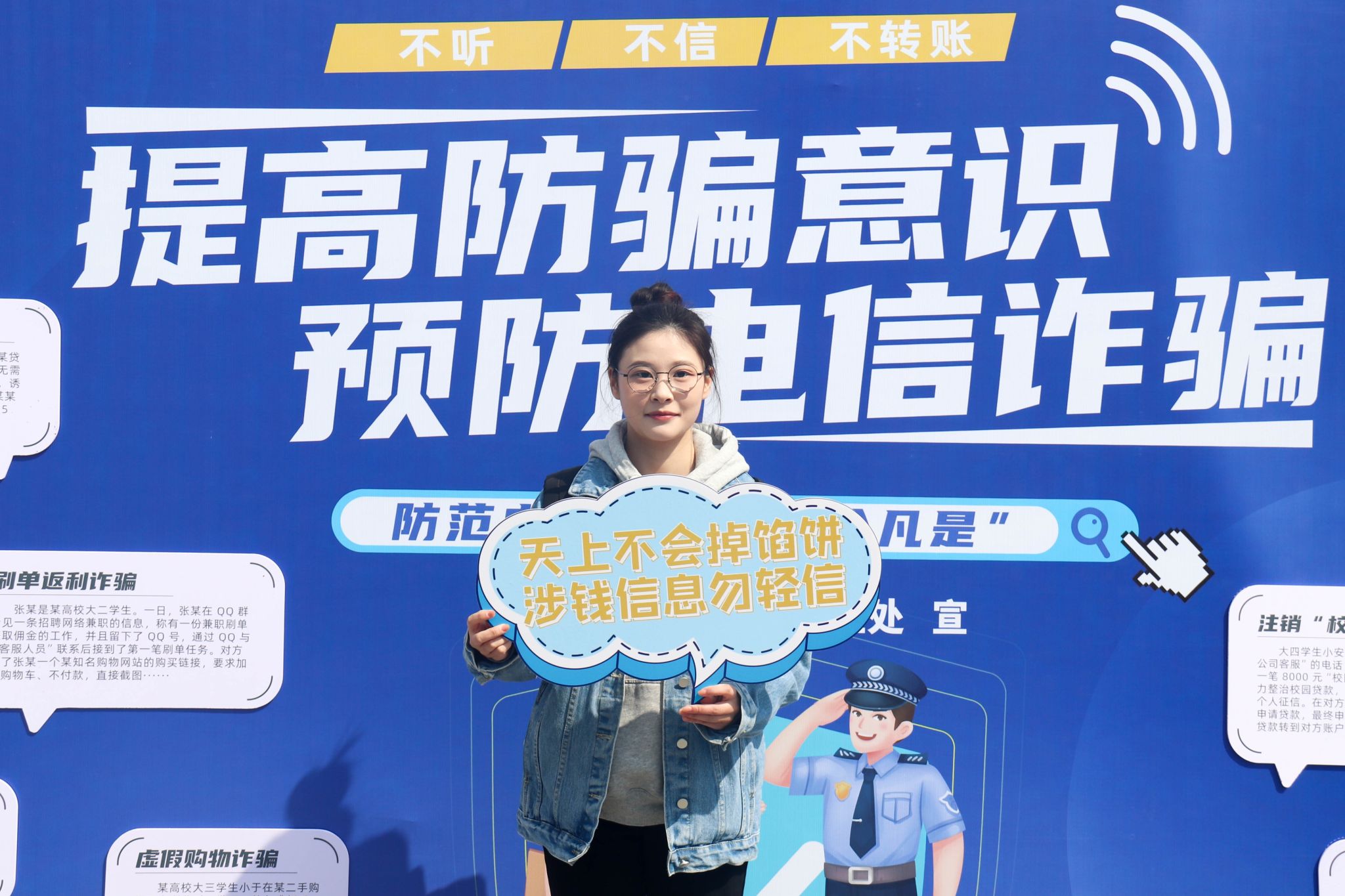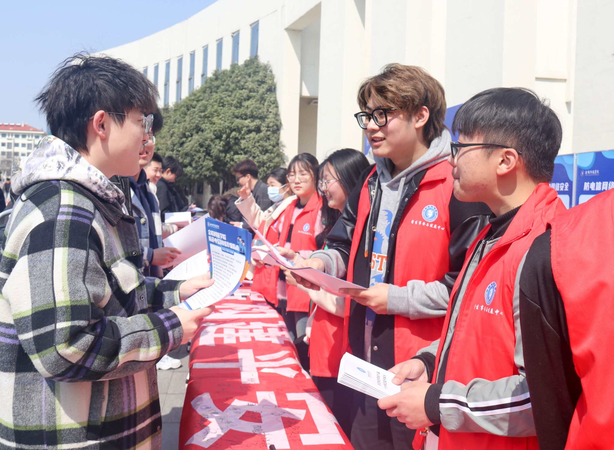在第60个“学雷锋纪念日”即将到来之际,为提高我校全体师生“反诈防诈”的安全意识,保障师生财产安全,“防范电信诈骗,构建平安金科”主题宣传教育活动在大学生活动中心和南区食堂开展。本次活动由学工部(处)、保卫部(处)主办,网通学院协办。