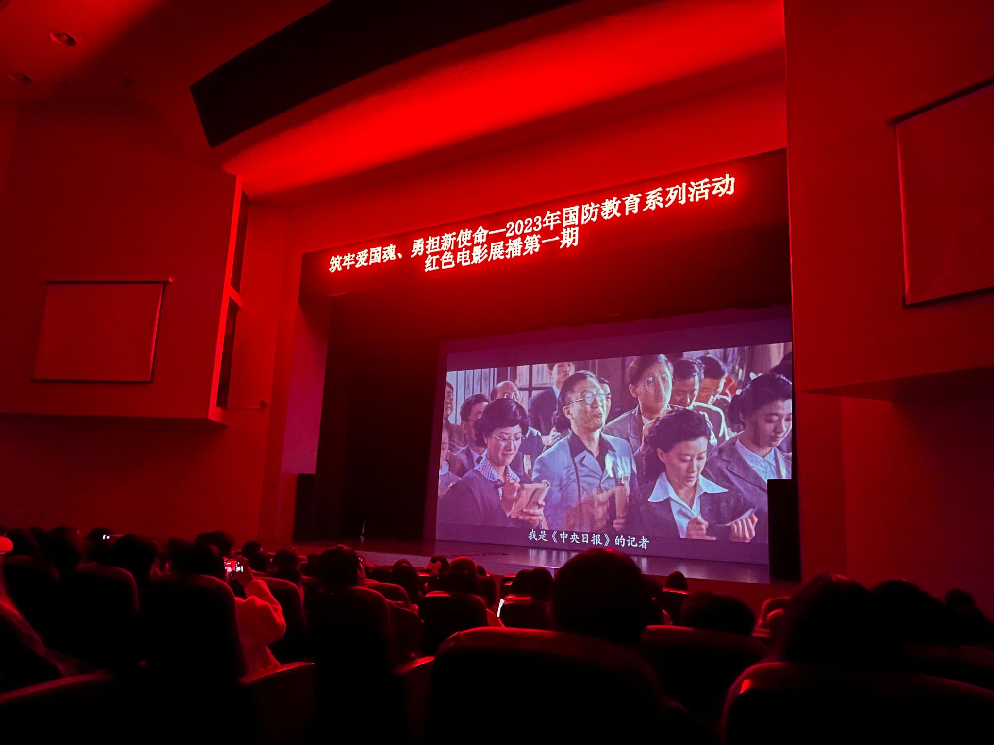 3月11日晚,我校在江宁校区大学生活动中心剧场开展红色影片展播活动,第一期播放的影片是《建国大业》,江宁校区15个学院近800名同学积极观影。该活动是校党委学生工作部、人民武装部为深入学习贯彻党的二十大精神开展的“筑牢爱国魂,勇担新使命”系列国防教育活动之一,在每月第二个星期六晚面向全校师生免费播放红色影片。