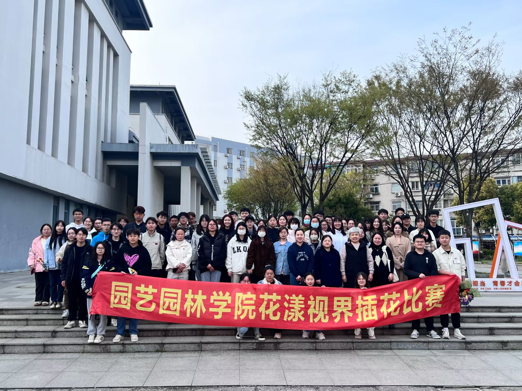 为提高学生对专业基础知识和基本技能的学习兴趣,培养大学生的实践能力和创新能力,园艺园林学院于3月18日下午在图教楼广场举办第19届“花漾视界”插花比赛。近百名学生参赛。学院党委副书记甘黎明、园艺系教授王春彦、园林系副系主任范俊俊、社团指导老师王淼出席活动并担任评审。