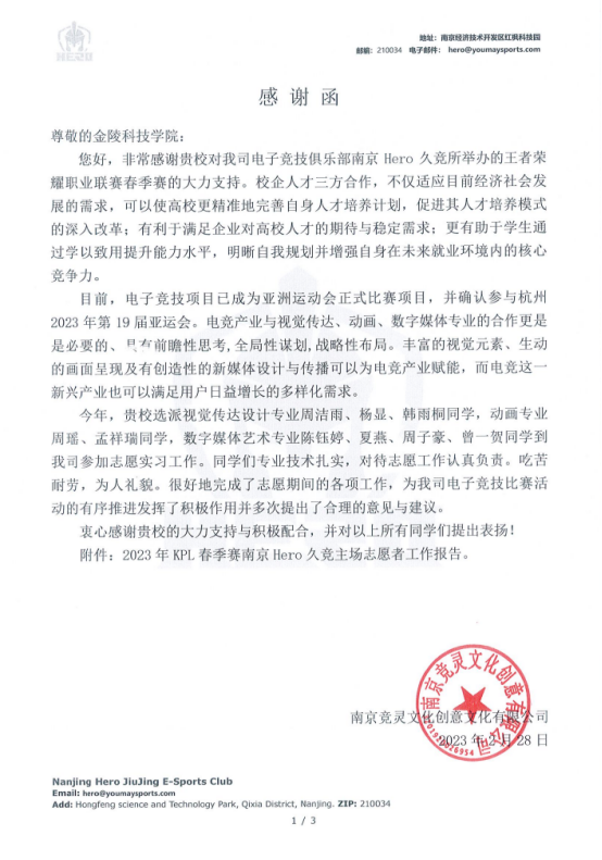 为助力2023王者荣耀职业联赛(KPL)春季赛在南京地区的顺利开展,2023年2月至4月,动漫学院组织志愿者团队参加南京电子竞技产业学院的活动,先后7次赴南京Hero久竞俱乐部参与志愿服务活动。