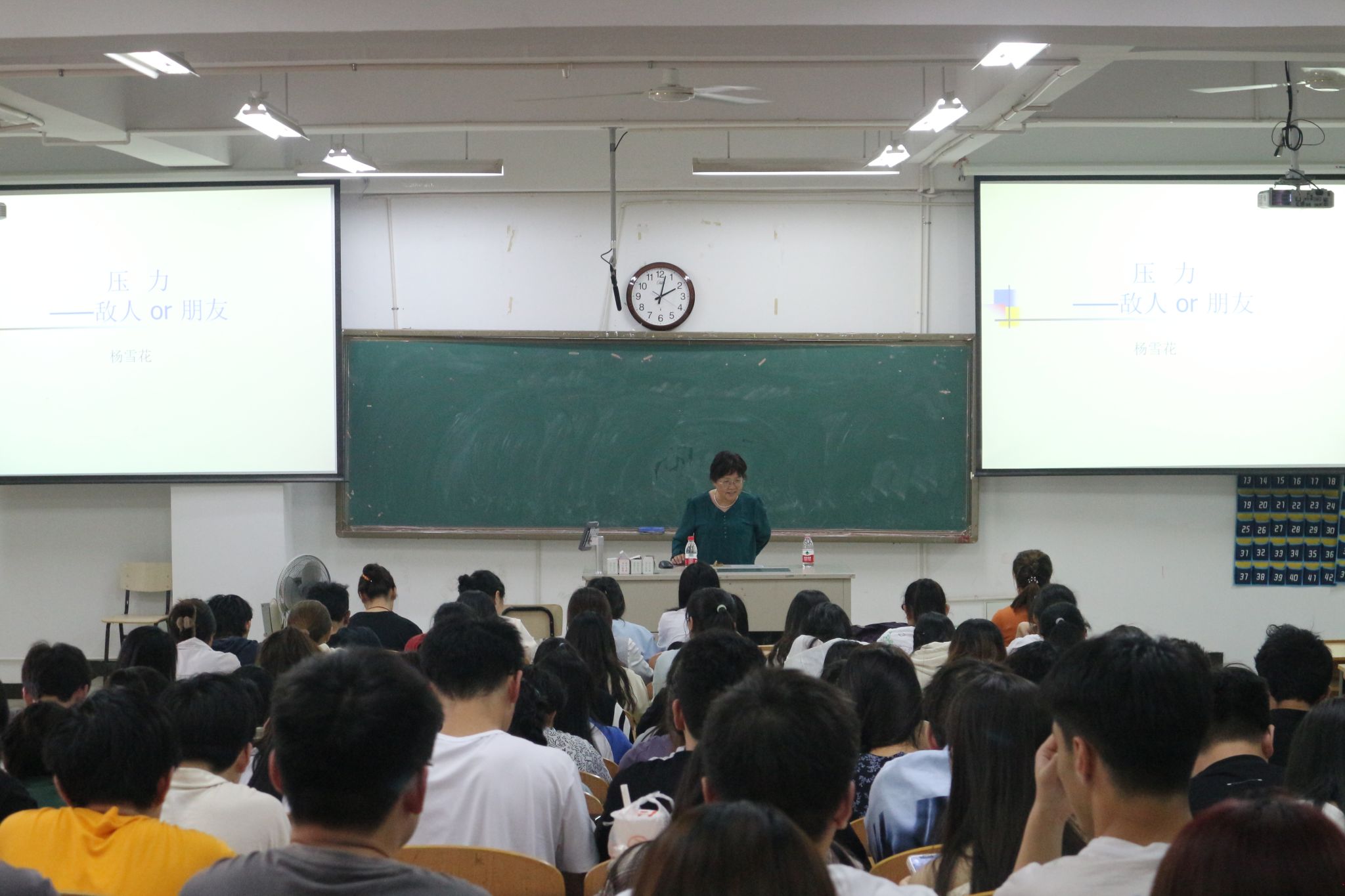 杨雪花以“压力——敌人or朋友”为主题,从什么是情绪及情绪的作用入手,结合真实的数据与案例,引导同学们要改变对压力的认知,树立正确的价值观和人生观,正向转化压力,健康生活。